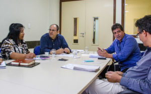 Também estiveram presentes na reunião a Vice-reitora da UFMS, professora Camila Ítavo, e o Pró-reitor de Extensão, Cultura e Esportes (Proece), Marcelo Fernandes.