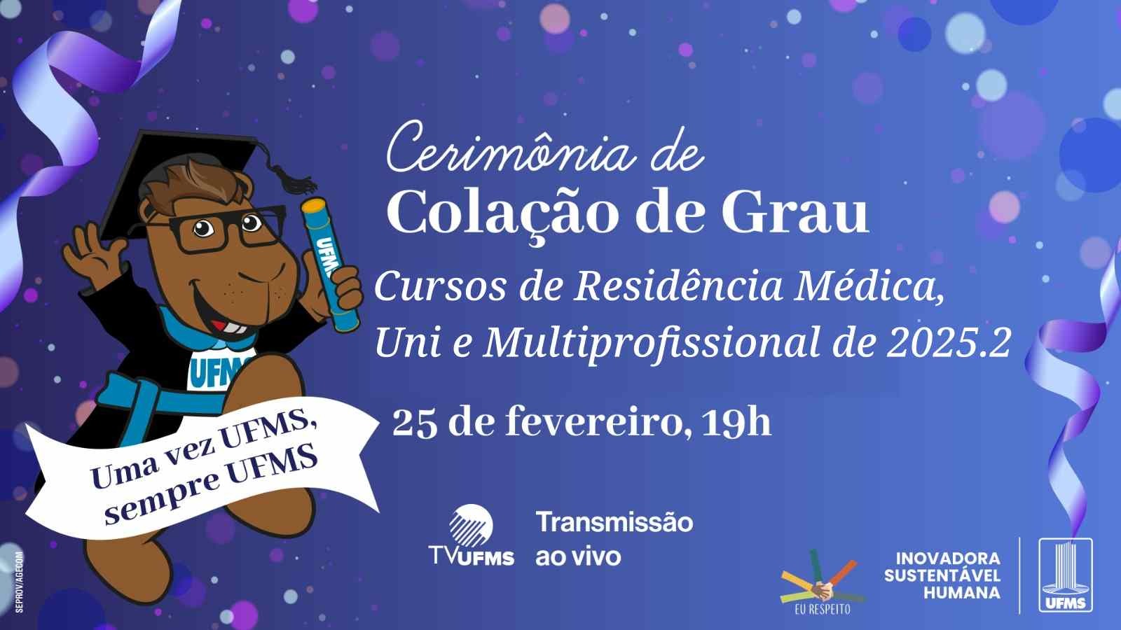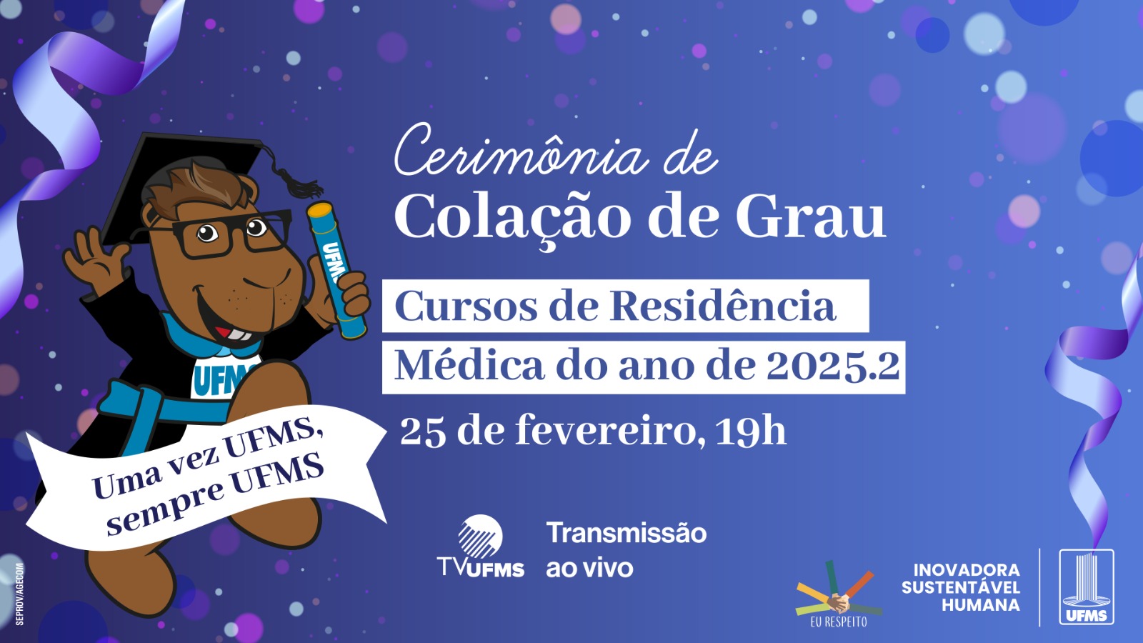 A Universidade se prepara para reconhecer um momento especial na vida de 62 novos especialistas. No dia 25, às 19h, na UFMS de Campo Grande, será realiza a solenidade de colação de grau dos cursos de Residência Médica, Multiprofissional e Uniprofissional. A cerimônia, que ocorrerá no Teatro Glauce Rocha, contará com transmissão ao vivo pela TV UFMS.