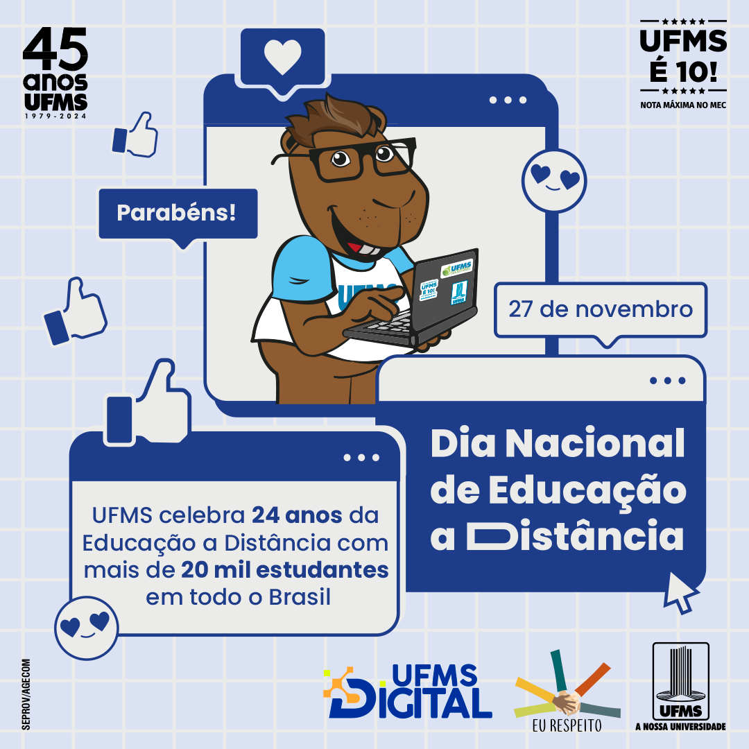 Com mais de 20 mil estudantes em todos os estados brasileiros, a UFMS celebra o Dia Nacional da Educação a Distância (EaD) nesta quarta-feira, 27. Em 2024, ano em que a EaD completa 24 anos na Instituição, a Universidade se consolida como referência na oferta de ensino superior a distância de qualidade. Recentemente, os cursos de graduação de Tecnologia em Gestão Comercial e Tecnologia em Processos Gerenciais conquistaram a nota máxima na avaliação do MEC.