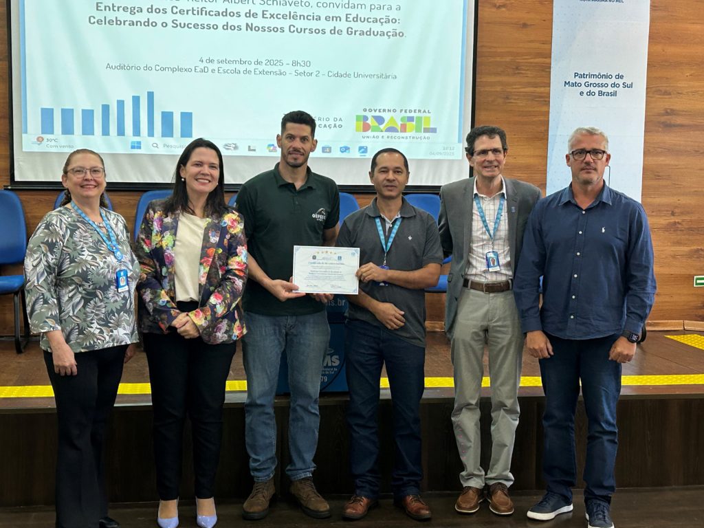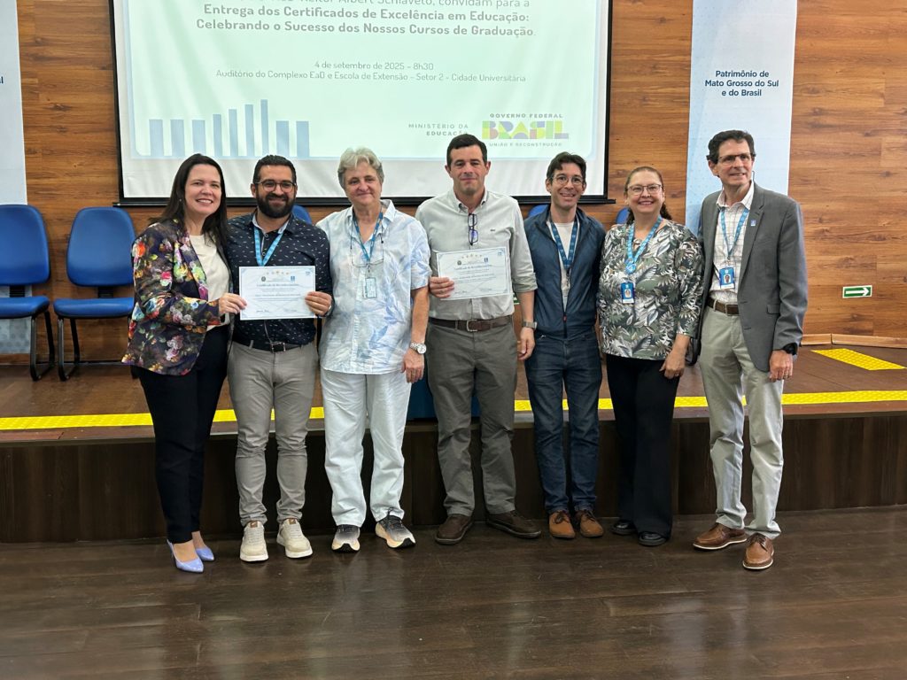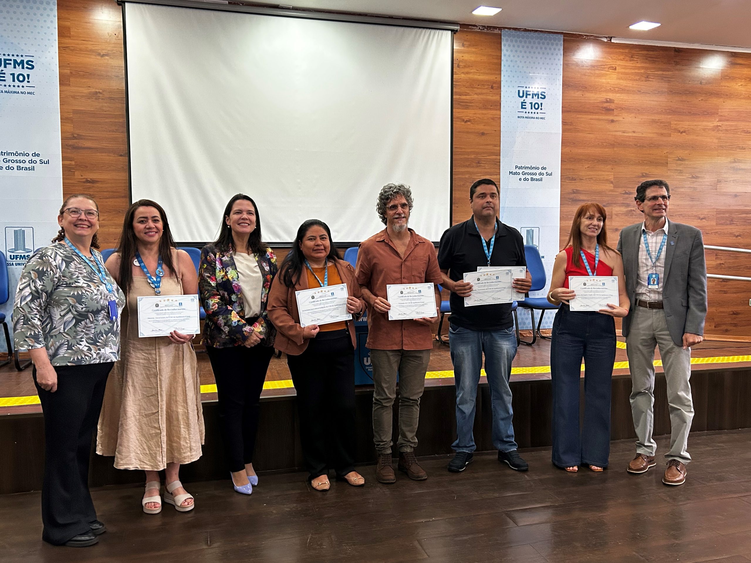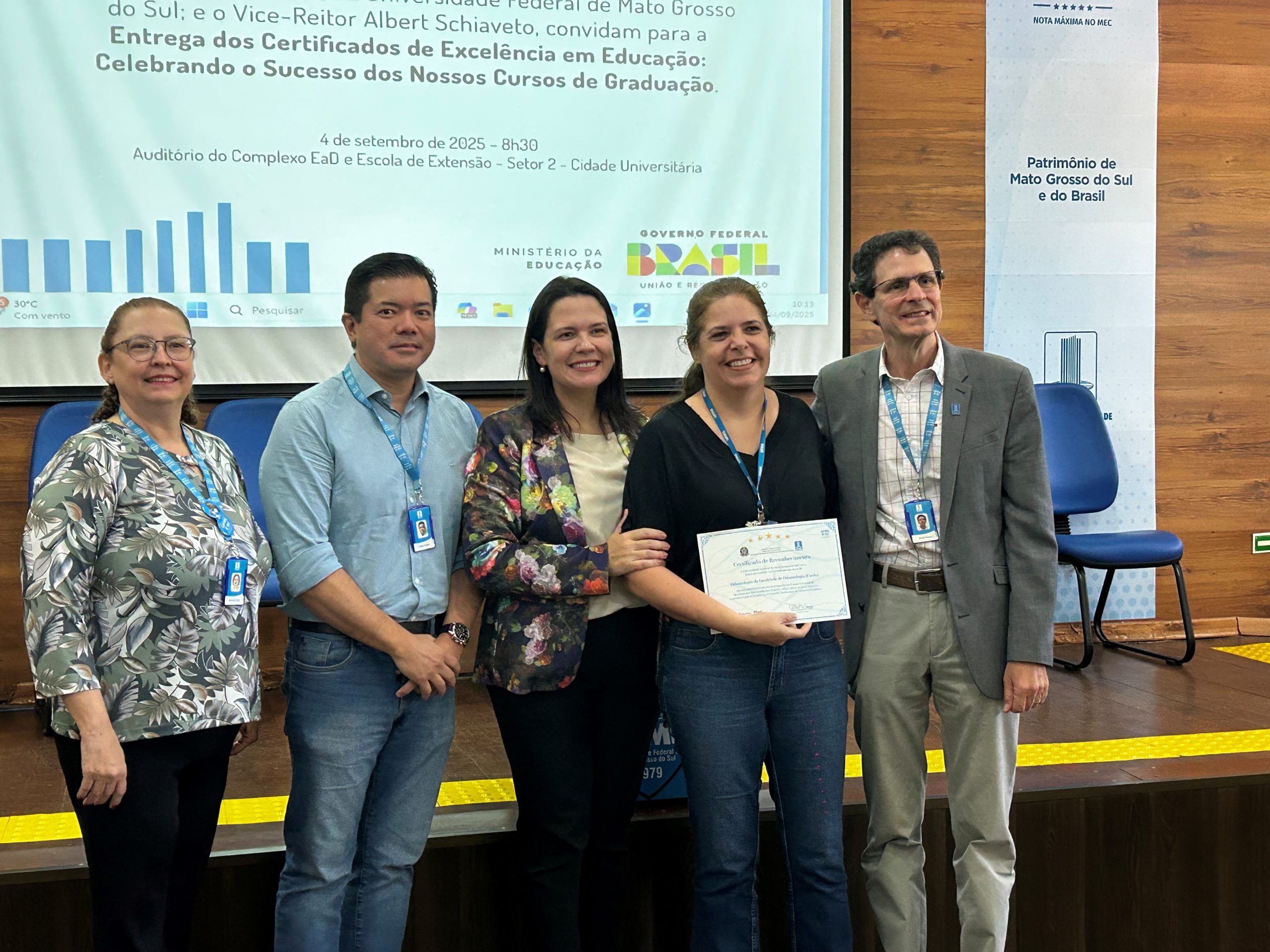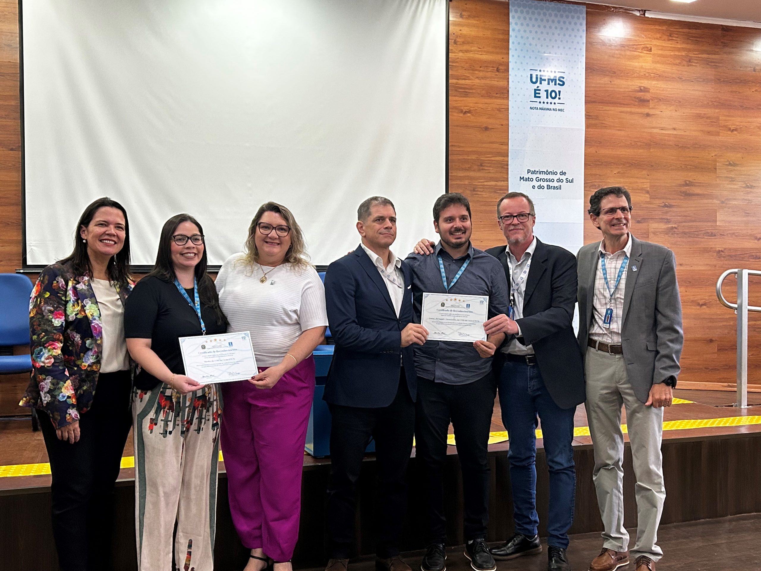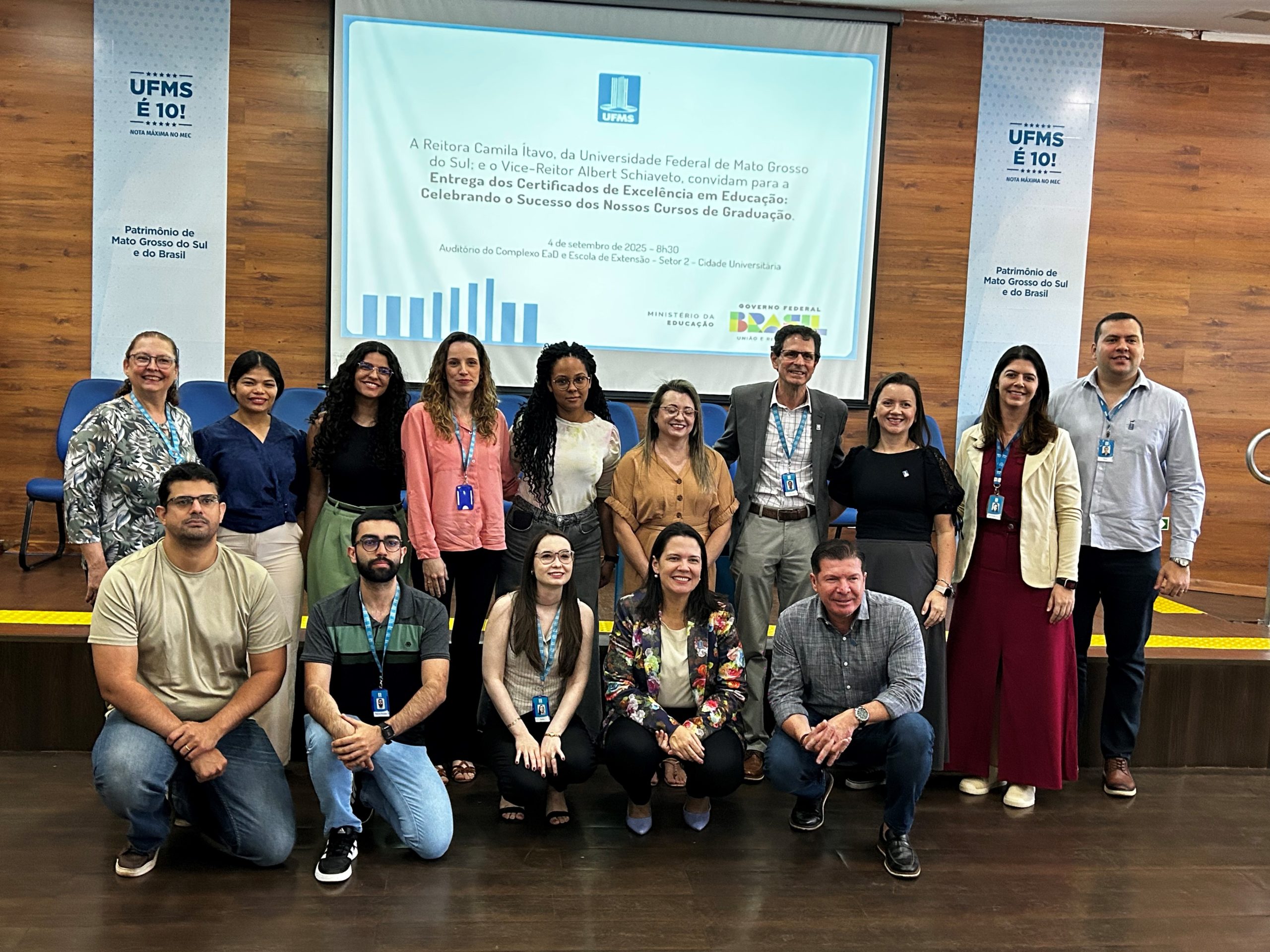“Que festa linda! A UFMS tem brilhado cada vez mais. Quando os nossos cursos tiram uma nota na avaliação de reconhecimento ou no Enade, isso representa o trabalho de toda a comunidade universitária. Quando certificamos os cursos de excelência, fazemos um agradecimento a todos, gestores, professores, técnicos e os nossos estudantes. A nossa Universidade tem como visão ser acessível a todos, reconhecida internacional e nacionalmente em termos de ensino, pesquisa, inovação, extensão, cultura, esporte, lazer, sustentabilidade, empreendedorismo e popularização da ciência. Estamos em um momento muito bom, pois isso tem acontecido. Parabéns a todos vocês, nosso muito obrigado mais do que merecido”, falou o vice-reitor.