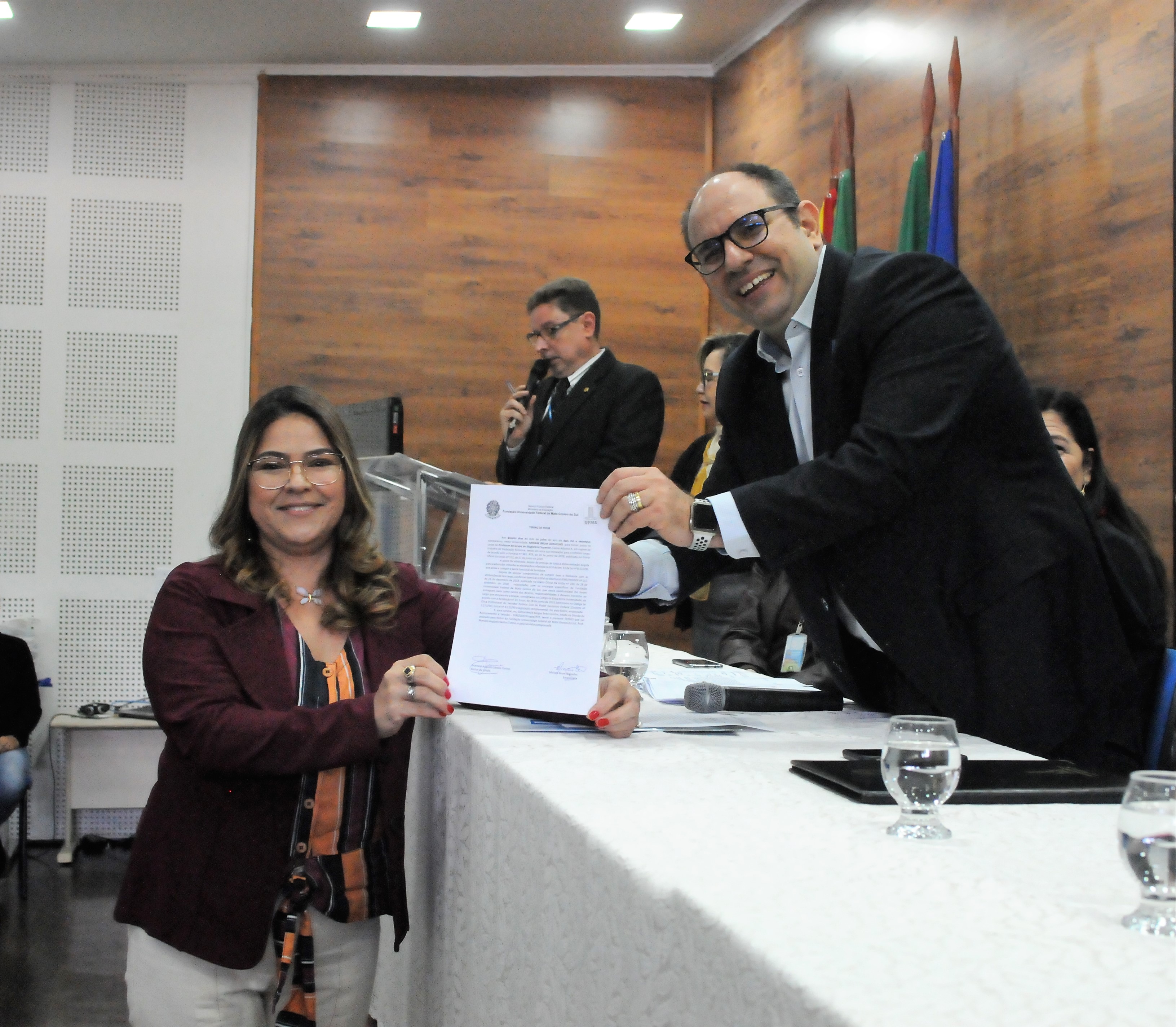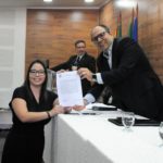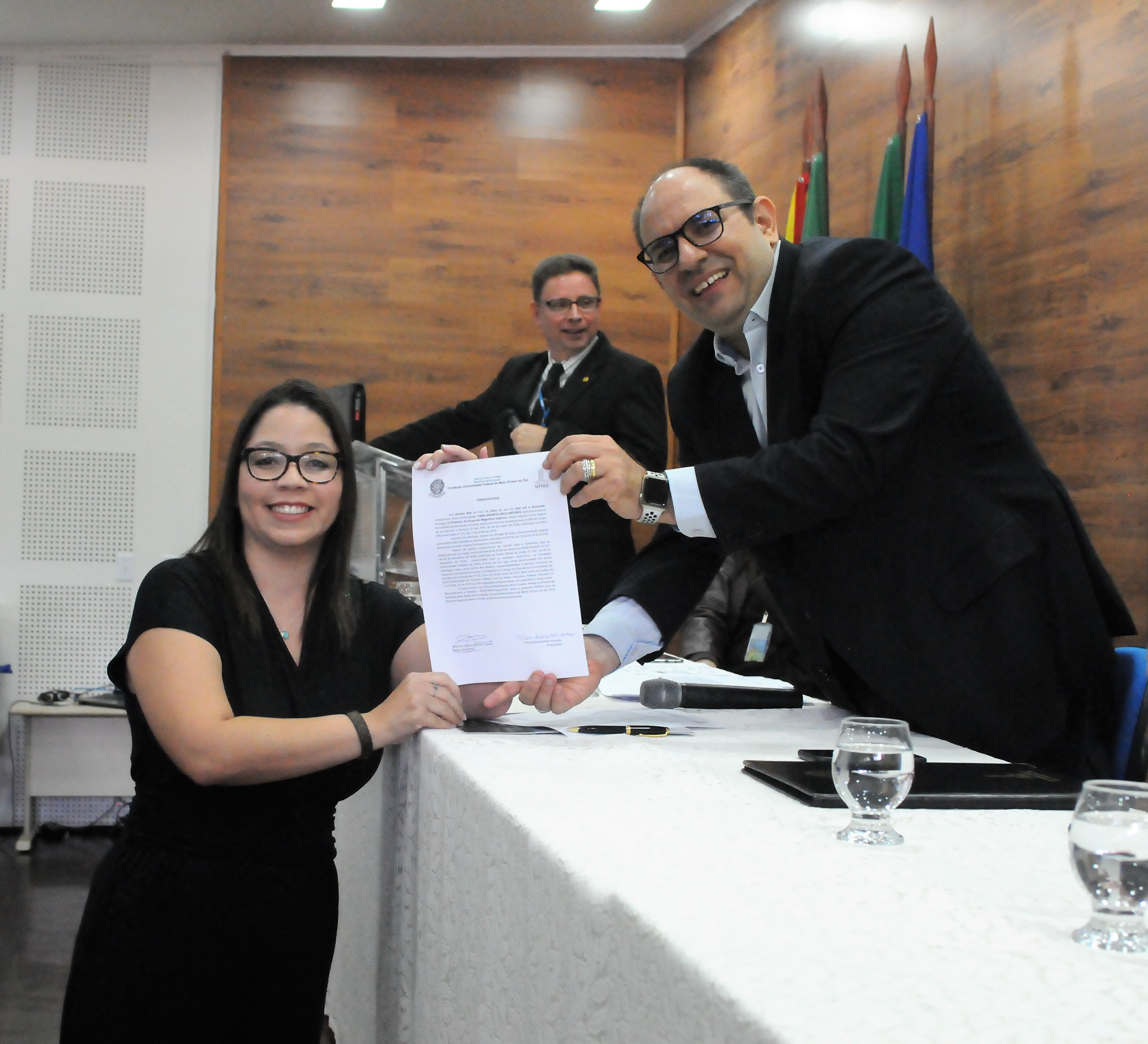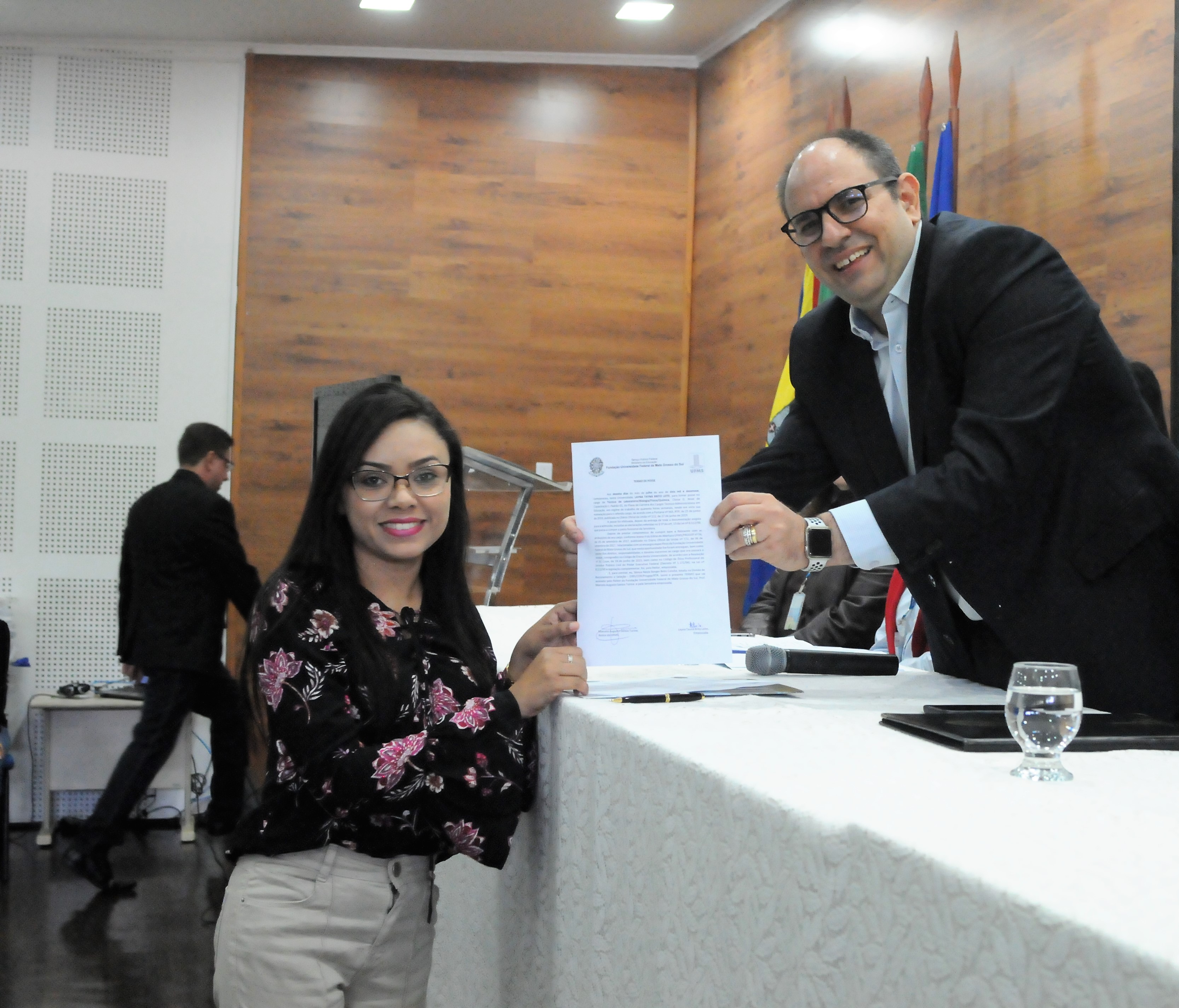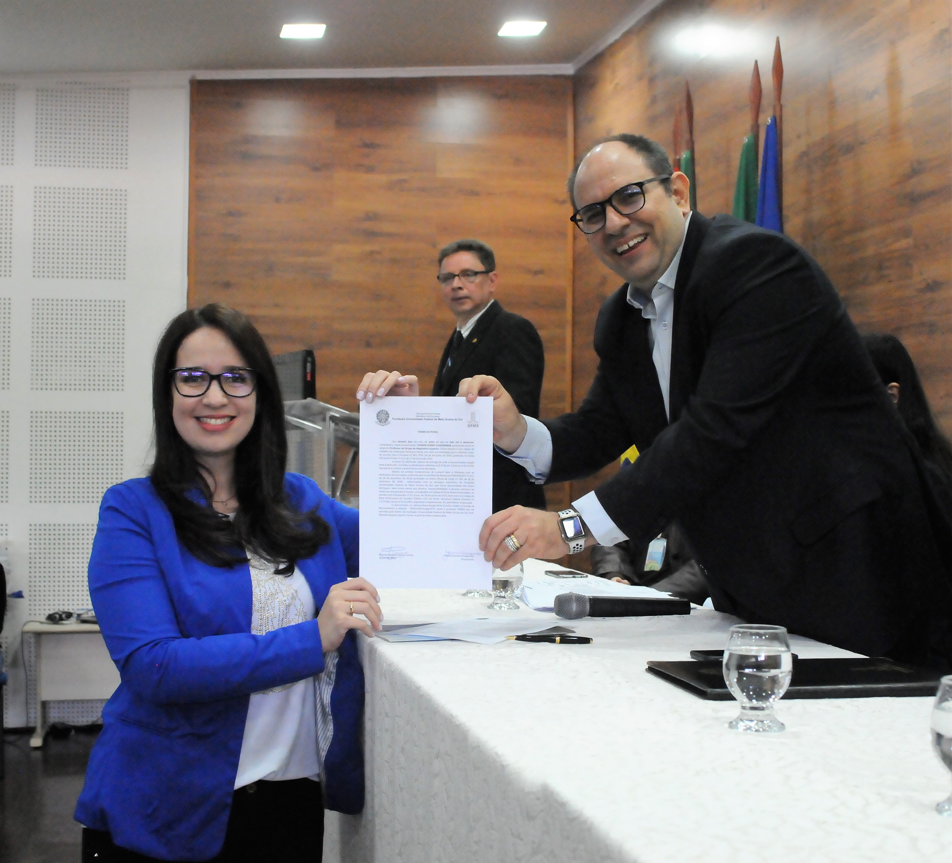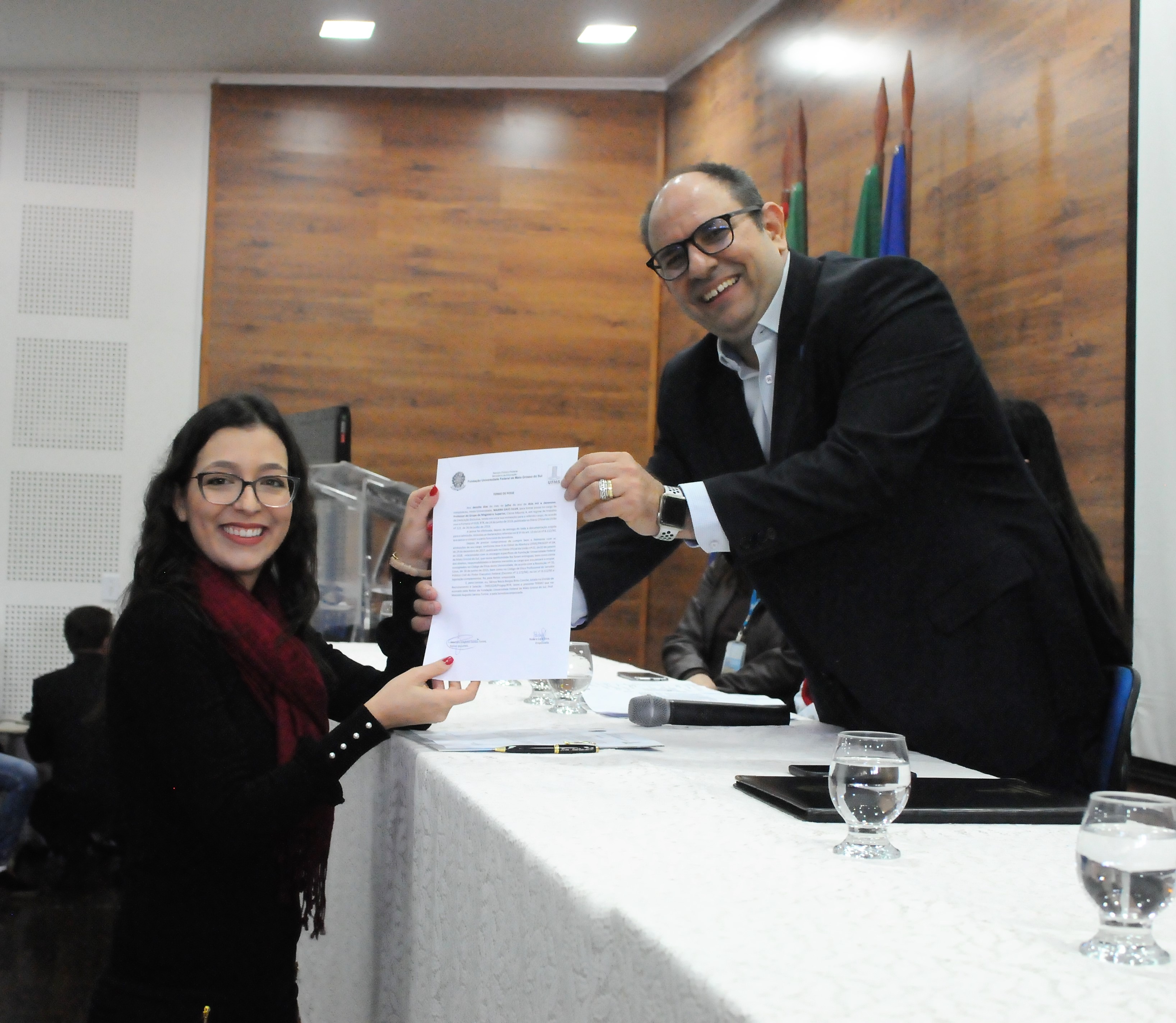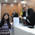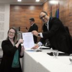 “É uma alegria muito grande tomar posse na Instituição na qual me formei, passa uma retrospectiva de tudo o que já vivi na UFMS na cabeça. Estou ansiosa e muito feliz de trabalhar aqui”, contou Yasmin Gomes Casagranda, que fez graduação, mestrado, doutorado e atualmente realiza pós-doutorado em Administração na Escola de Administração e Negócios (Esan) da UFMS.