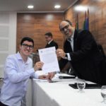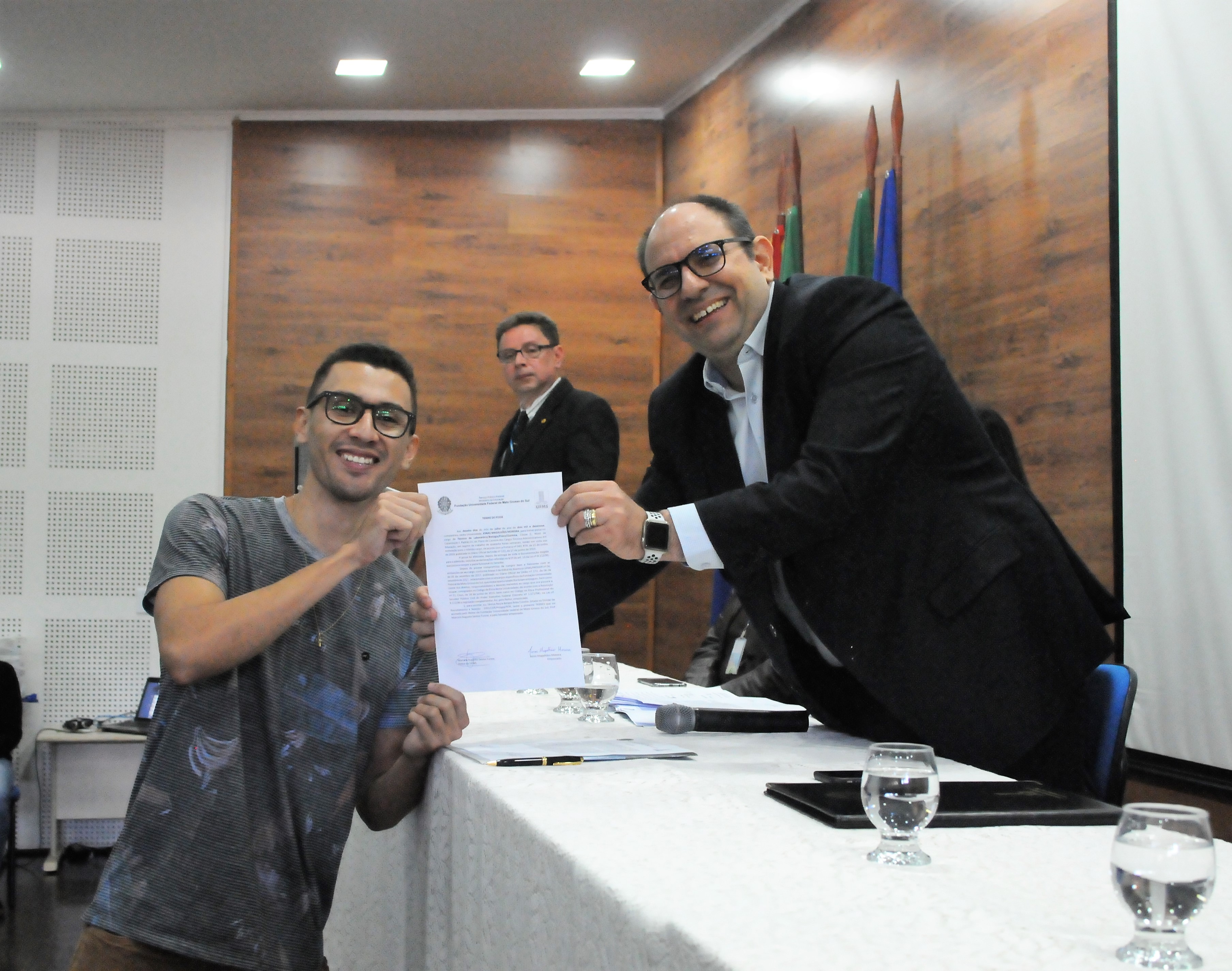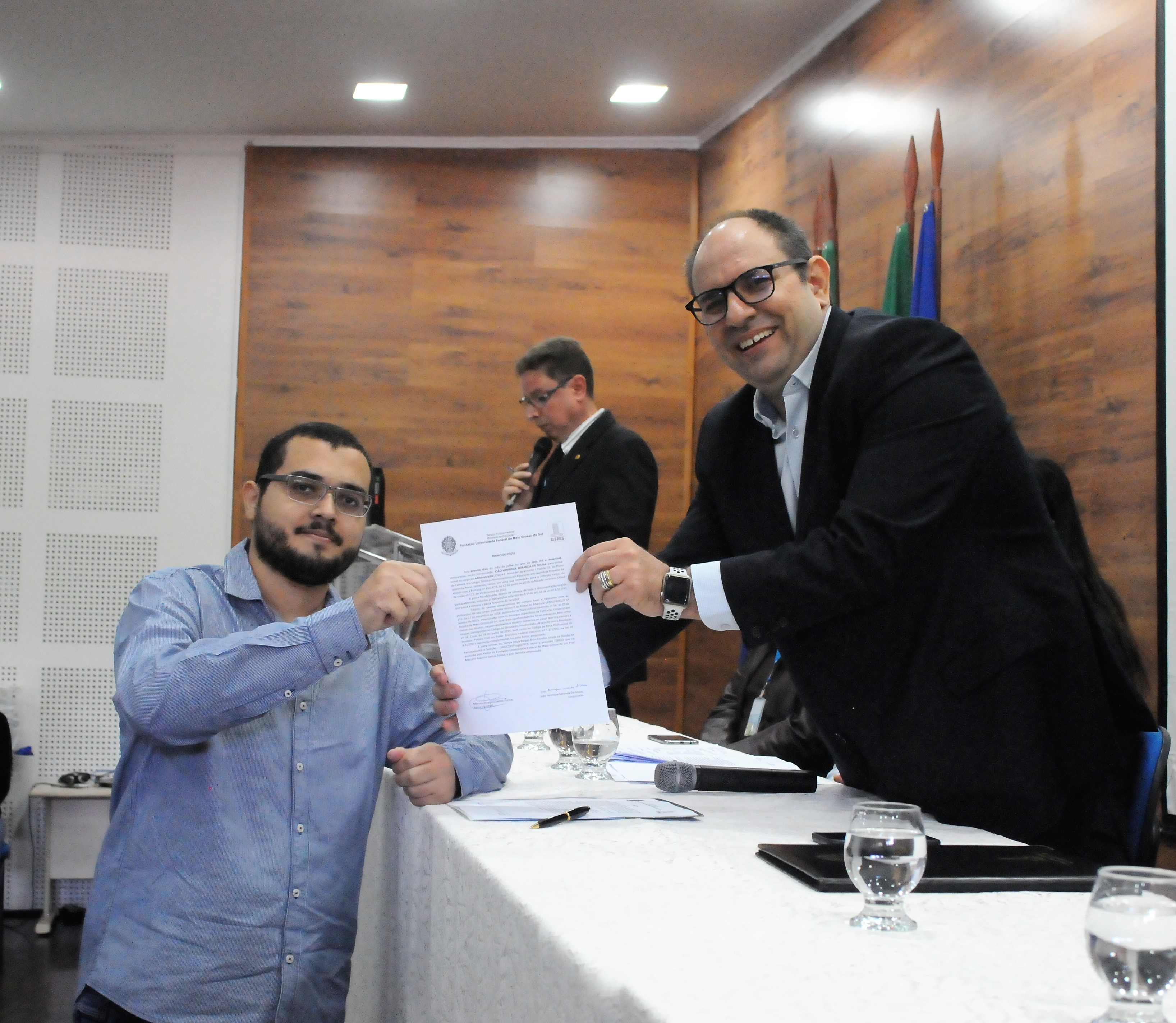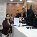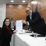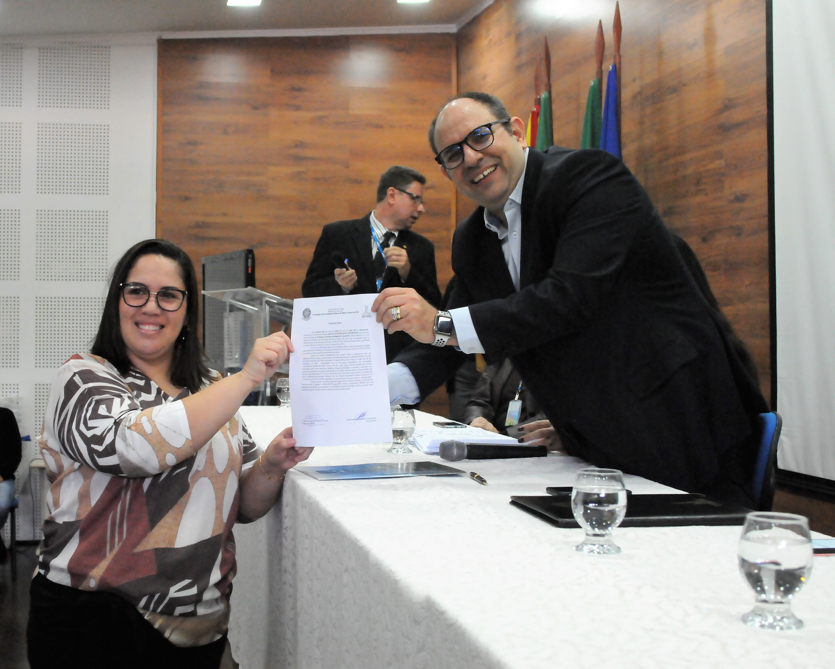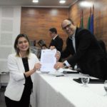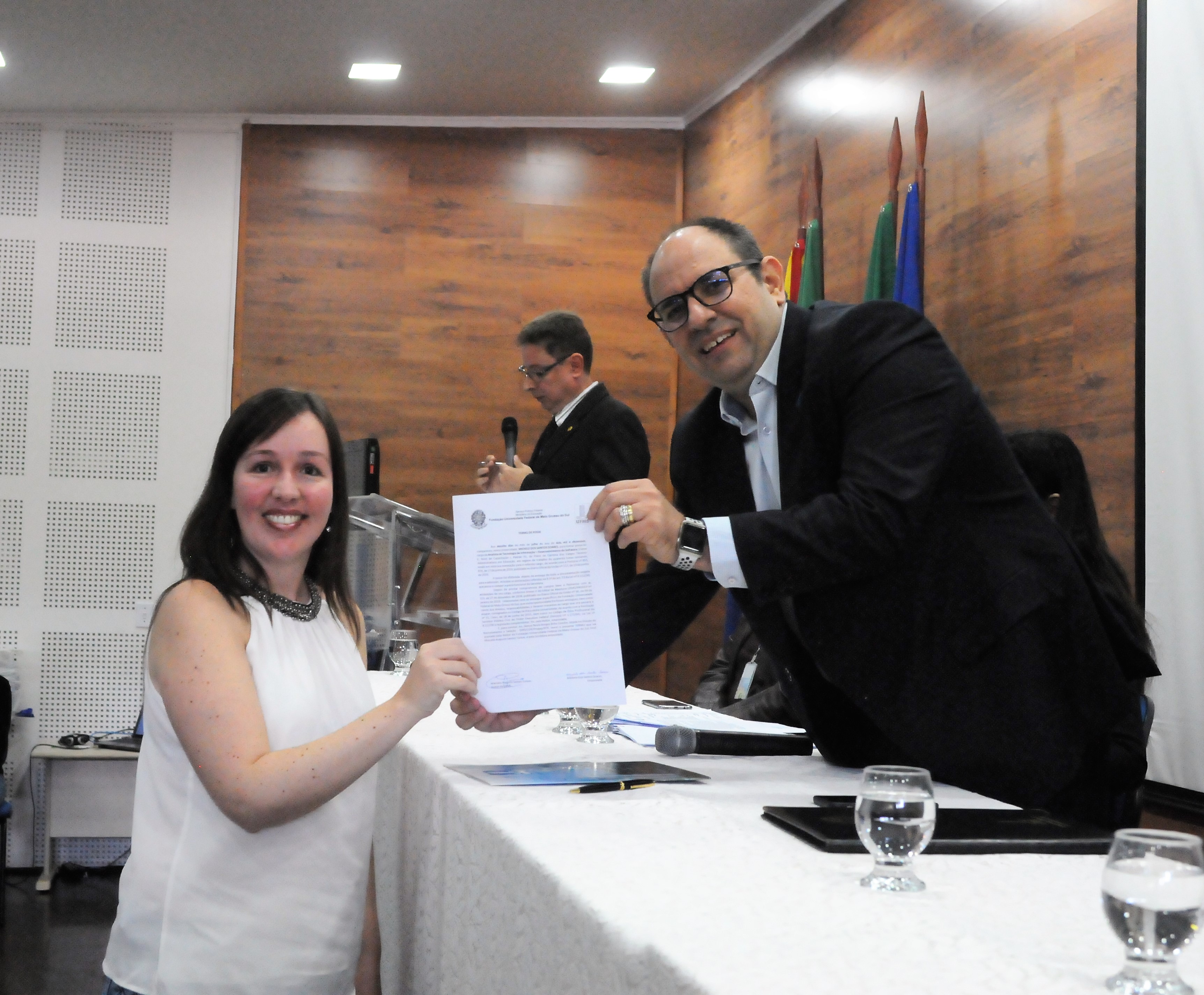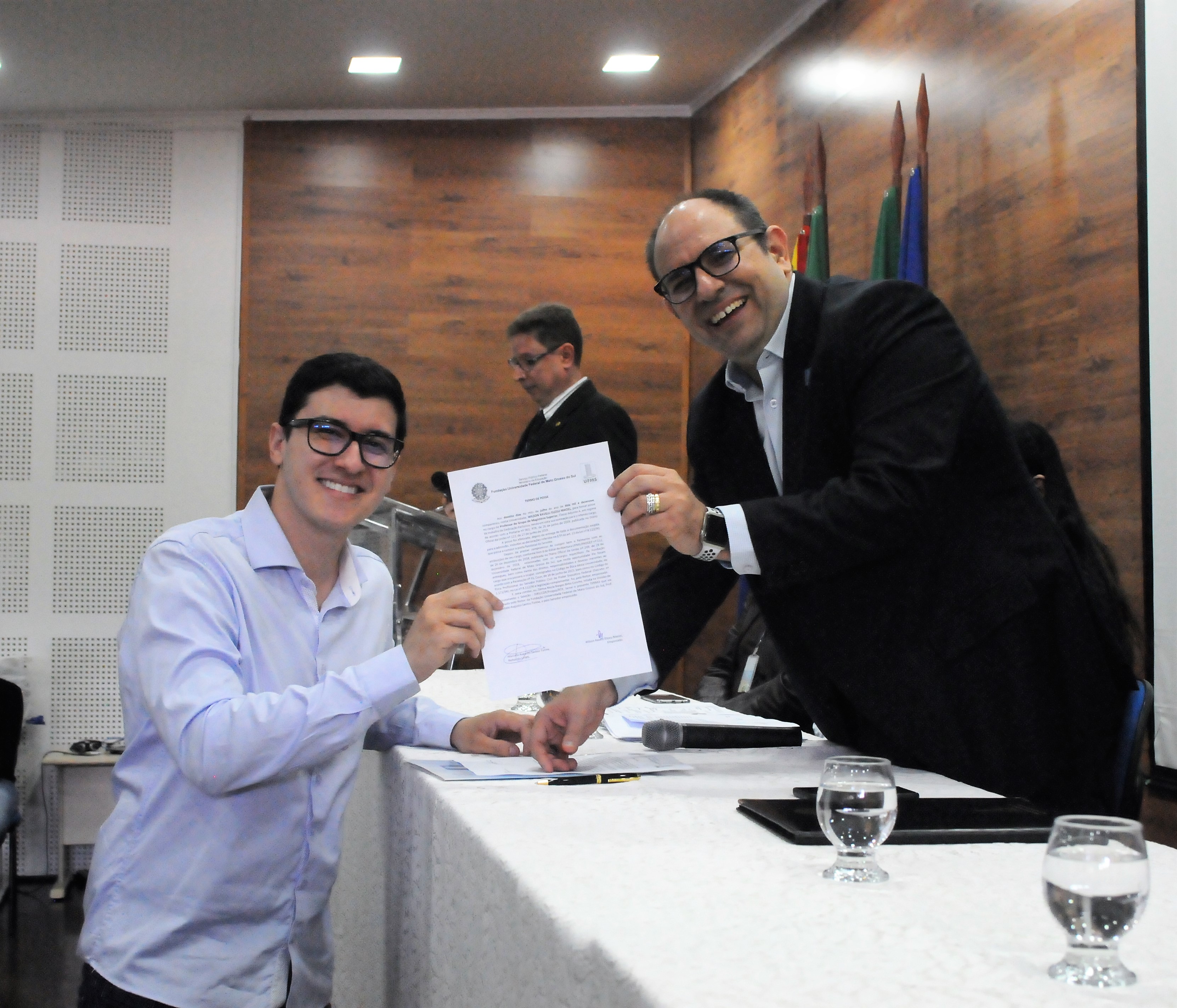 “É uma alegria muito grande tomar posse na Instituição na qual me formei, passa uma retrospectiva de tudo o que já vivi na UFMS na cabeça. Estou ansiosa e muito feliz de trabalhar aqui”, contou Yasmin Gomes Casagranda, que fez graduação, mestrado, doutorado e atualmente realiza pós-doutorado em Administração na Escola de Administração e Negócios (Esan) da UFMS.
