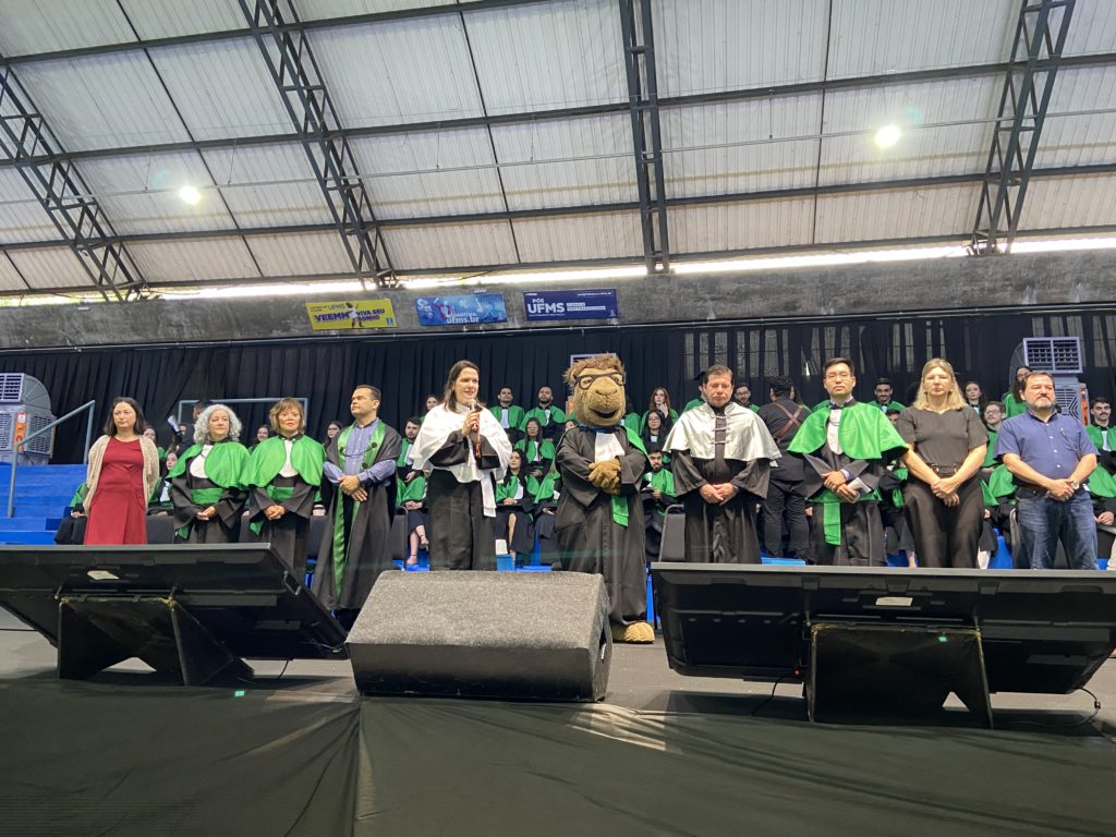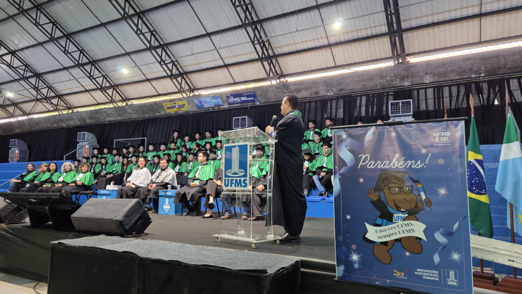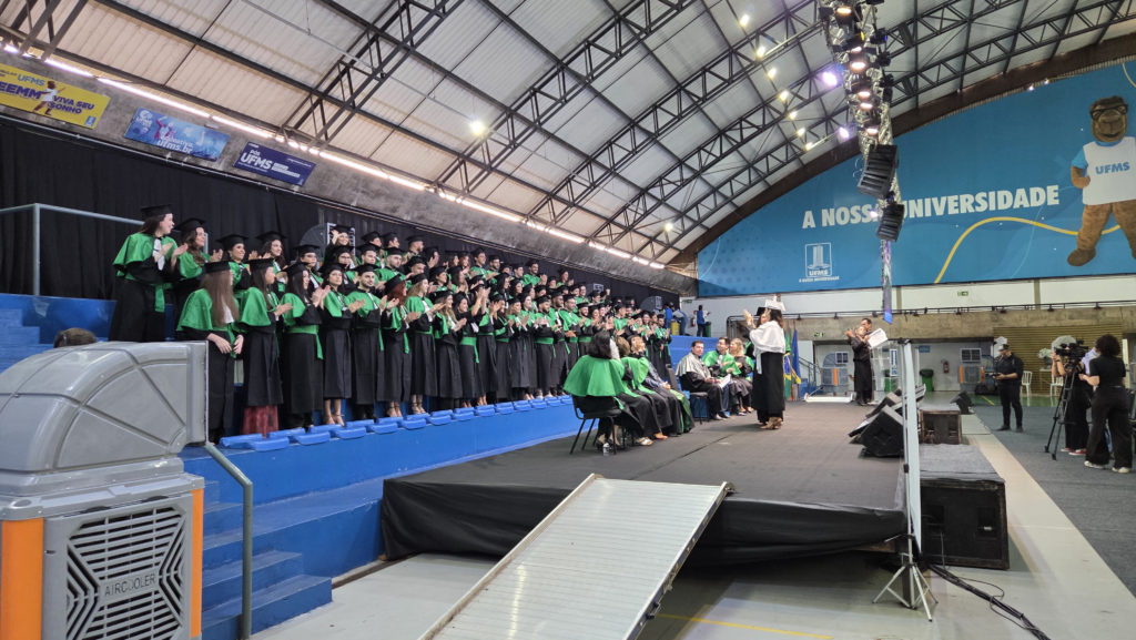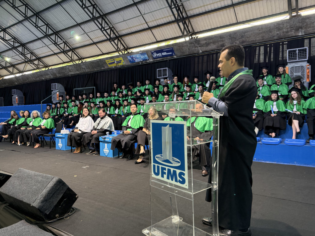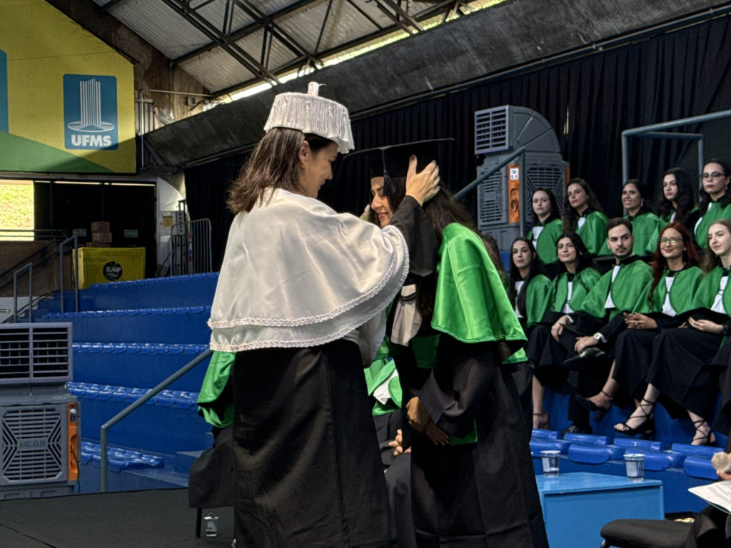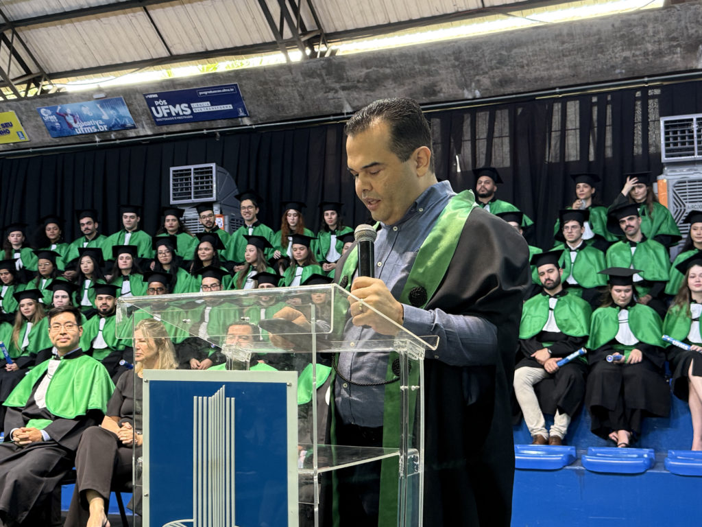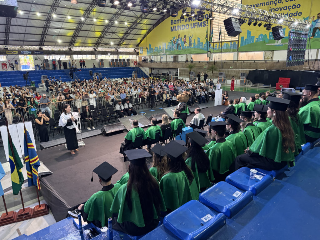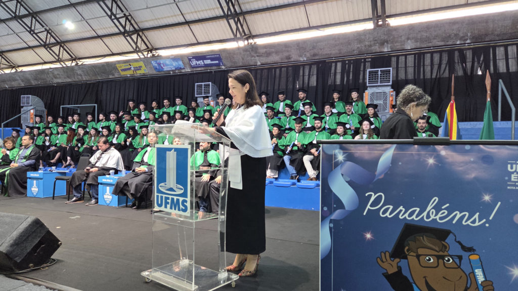 Neste ano, foram feitos esforços conjuntos para realização da cerimônia de colação de grau de todos os cursos ainda em 2025. “Para além da formação técnica, quero muito contar com vocês para que tenhamos médicos e médicas, acima de tudo, profissionais humanos, humanizados, humanizadores. Que lembremos sempre de características importantes como: integridade, ética, compromisso, pontualidade, boa convivência, formação continuada, humildade e, principalmente, sabendo que todos nós temos a grande oportunidade de fazer a diferença. Não competir, iluminar os colegas e atuar em parceria. Hoje, agradecemos e celebramos os momentos bons e os momentos difíceis. A partir de hoje a alma mater de vocês é a UFMS, defendam a Universidade”, ressaltou a reitora.