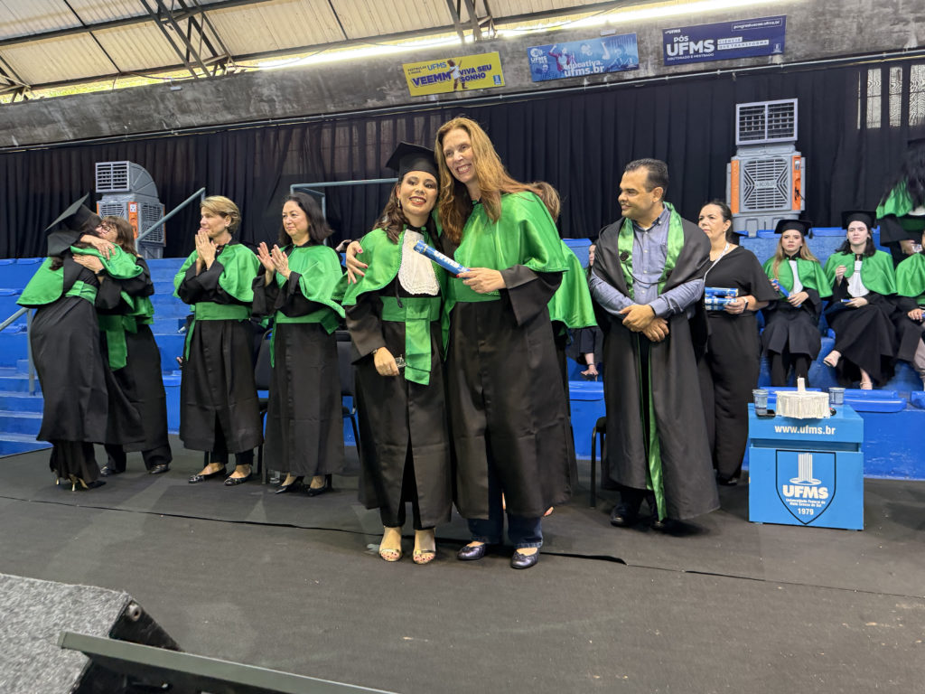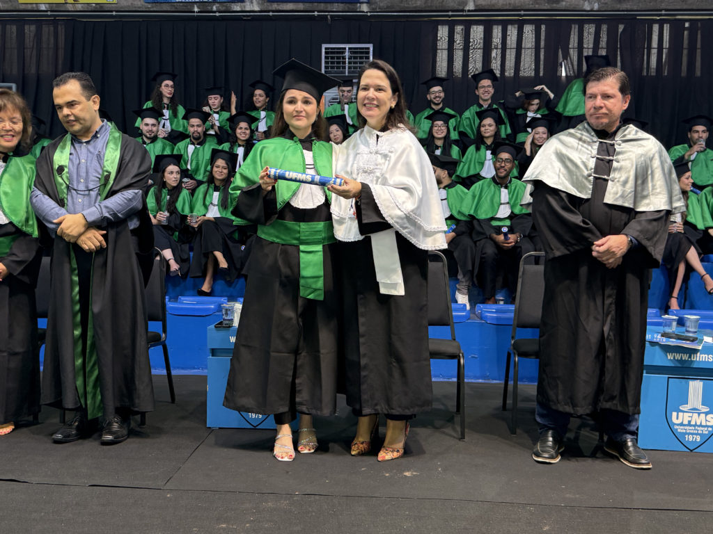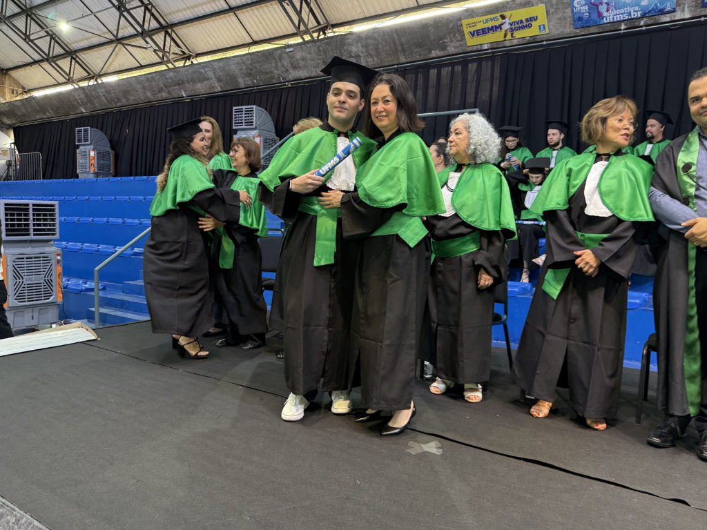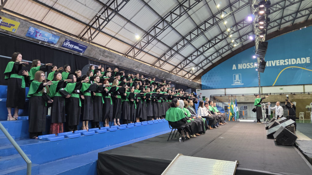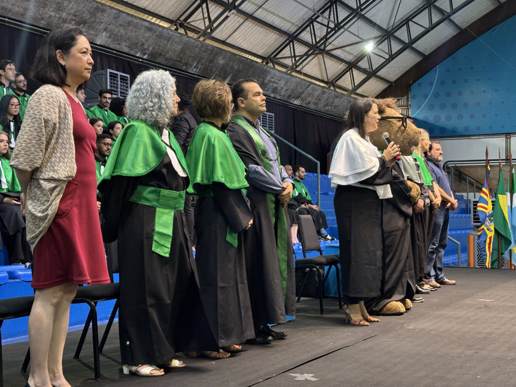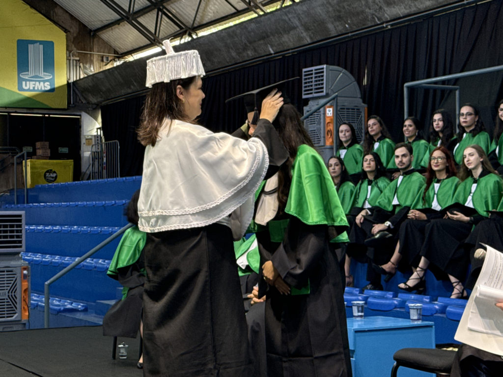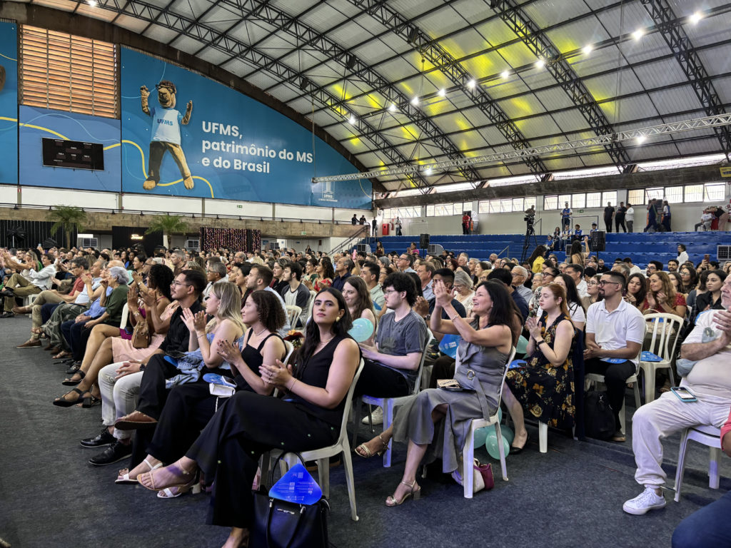 Neste ano, foram feitos esforços conjuntos para realização da cerimônia de colação de grau de todos os cursos ainda em 2025. “Para além da formação técnica, quero muito contar com vocês para que tenhamos médicos e médicas, acima de tudo, profissionais humanos, humanizados, humanizadores. Que lembremos sempre de características importantes como: integridade, ética, compromisso, pontualidade, boa convivência, formação continuada, humildade e, principalmente, sabendo que todos nós temos a grande oportunidade de fazer a diferença. Não competir, iluminar os colegas e atuar em parceria. Hoje, agradecemos e celebramos os momentos bons e os momentos difíceis. A partir de hoje a alma mater de vocês é a UFMS, defendam a Universidade”, ressaltou a reitora.