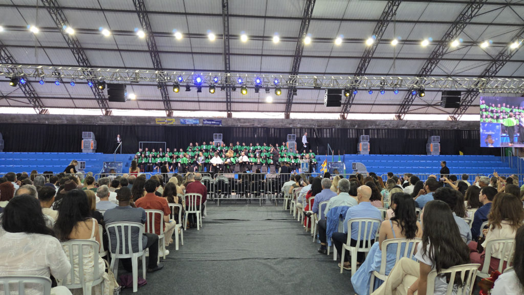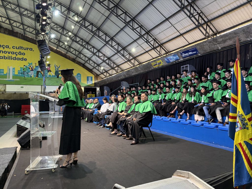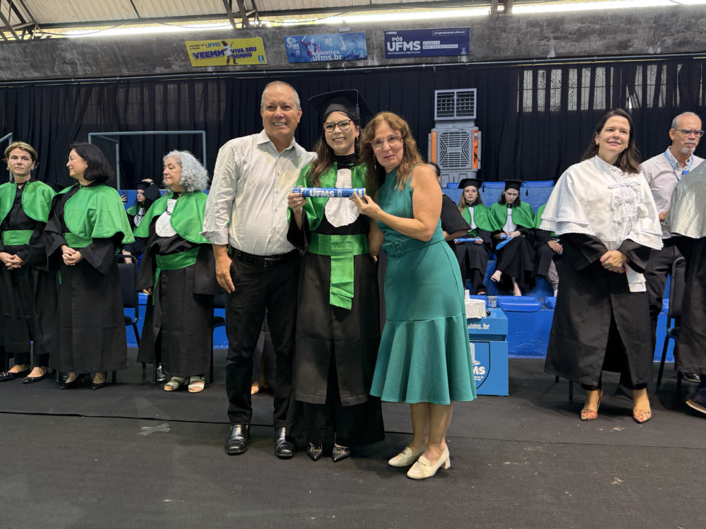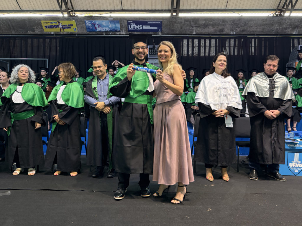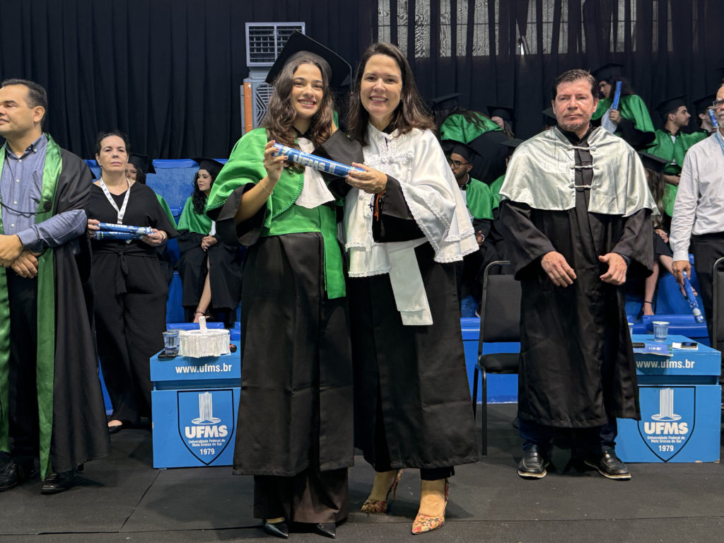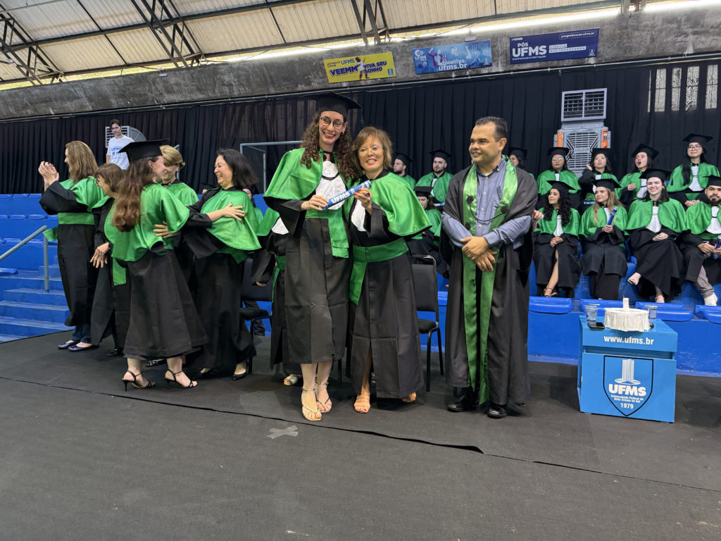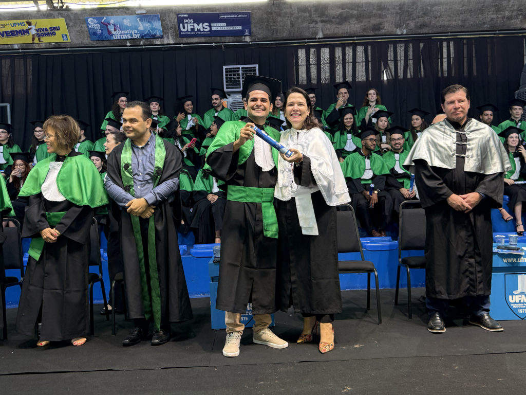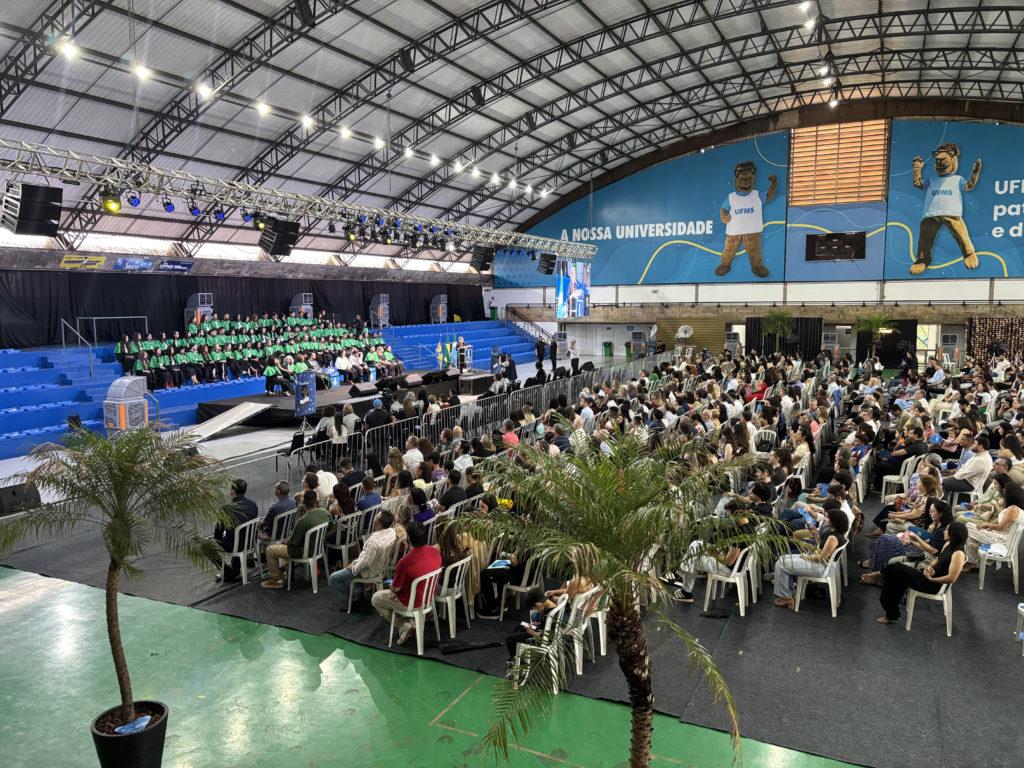 Neste ano, foram feitos esforços conjuntos para realização da cerimônia de colação de grau de todos os cursos ainda em 2025. “Para além da formação técnica, quero muito contar com vocês para que tenhamos médicos e médicas, acima de tudo, profissionais humanos, humanizados, humanizadores. Que lembremos sempre de características importantes como: integridade, ética, compromisso, pontualidade, boa convivência, formação continuada, humildade e, principalmente, sabendo que todos nós temos a grande oportunidade de fazer a diferença. Não competir, iluminar os colegas e atuar em parceria. Hoje, agradecemos e celebramos os momentos bons e os momentos difíceis. A partir de hoje a alma mater de vocês é a UFMS, defendam a Universidade”, ressaltou a reitora.