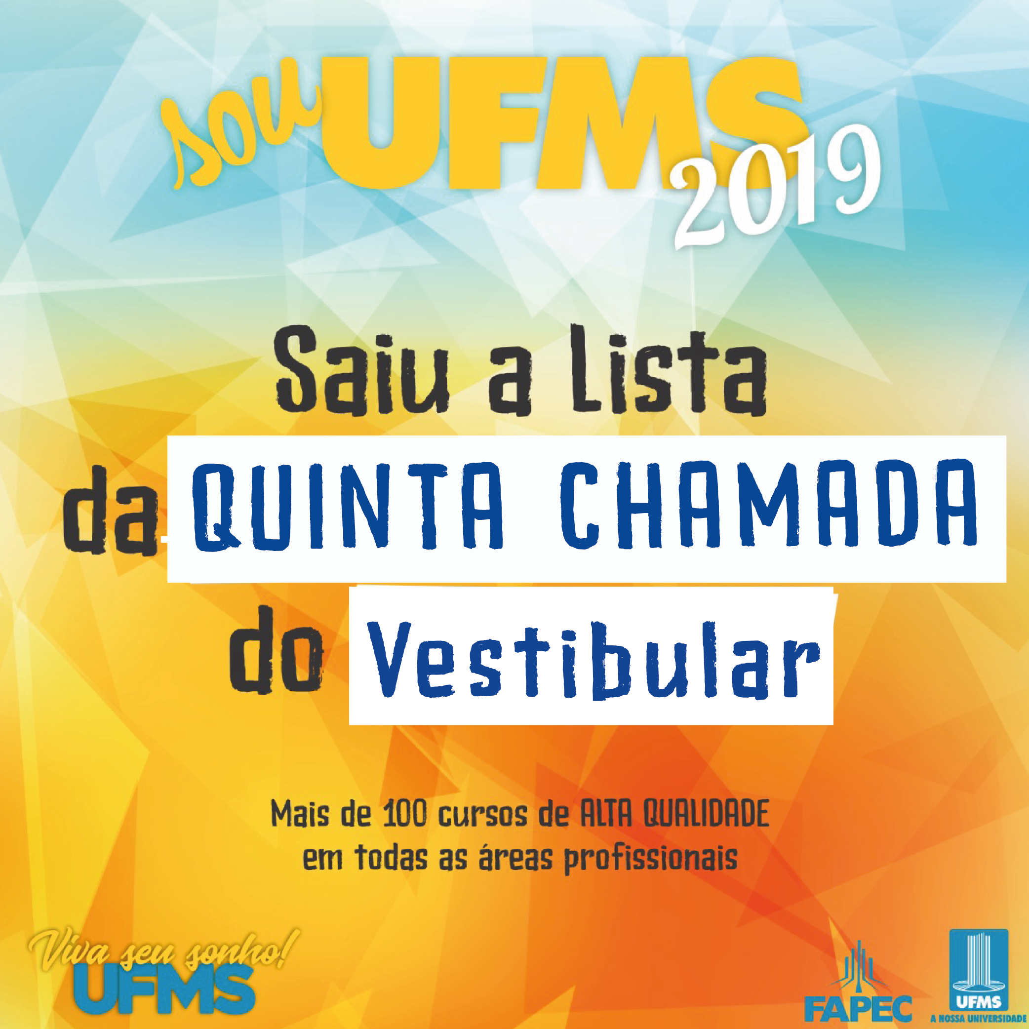 Foi divulgada nesta quarta-feira, 06, a lista de convocados para a 5ª e última chamada do Vestibular UFMS 2019.