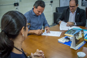 A assinatura do acordo foi realizada ontem (2) pelo reitor Marcelo Turine, prefeito Marquinhos Trad, secretário municipal de Governo e Relações Institucionais Antônio Cézar Lacerda Alves e subsecretária de Políticas para a Mulher Carla Charbel Stephanini.