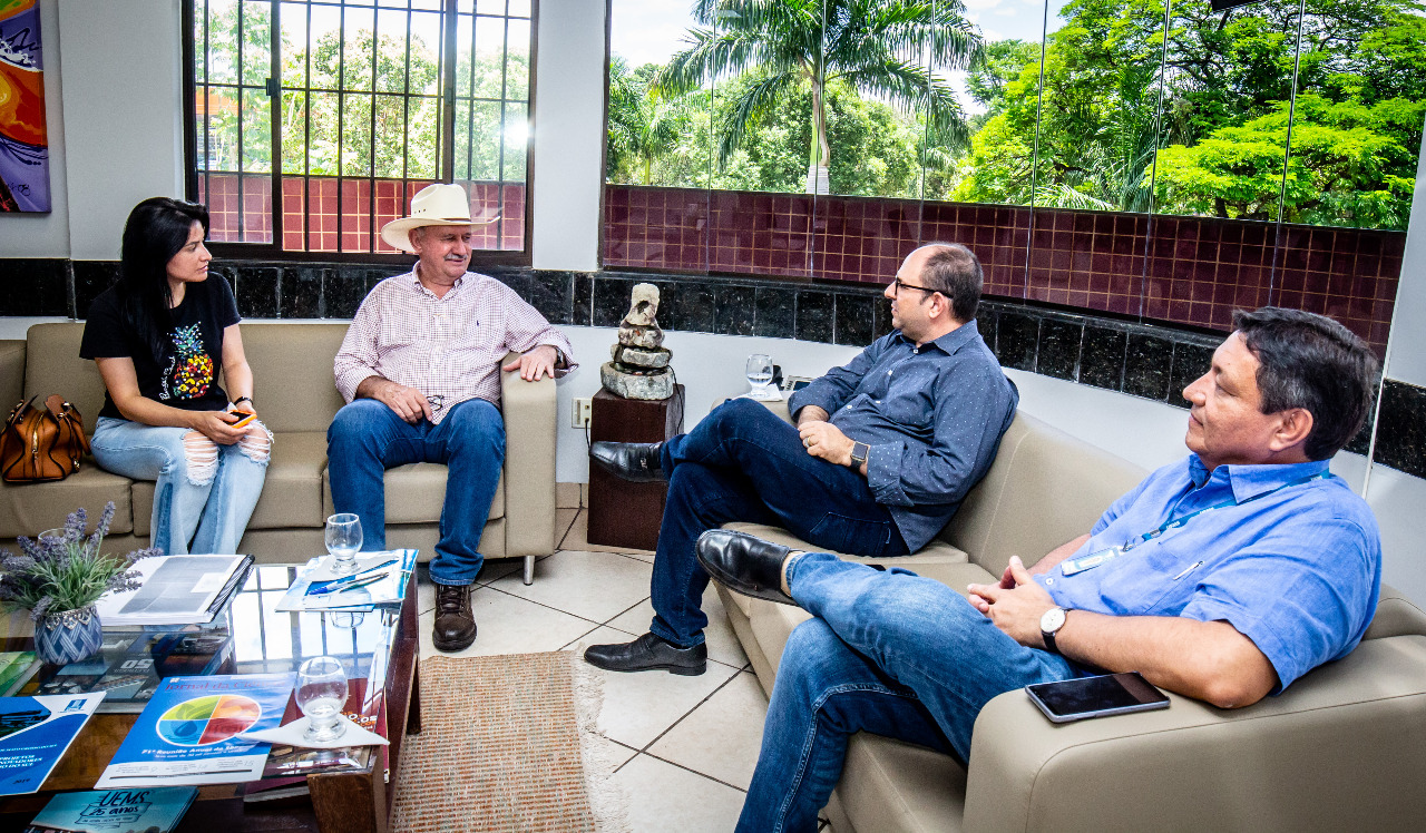 Na manhã de hoje (28) o reitor Marcelo Turine e o pró-reitor de Administração e Infraestrutura Augusto Malheiros se reuniram com o prefeito de Rio Verde de Mato Grosso (MS) Mário Kruger e a chefe de gabinete da prefeitura Silvana Linhares. Entre outros assuntos, abordaram a doação de bens não utilizáveis pela UFMS ao município.