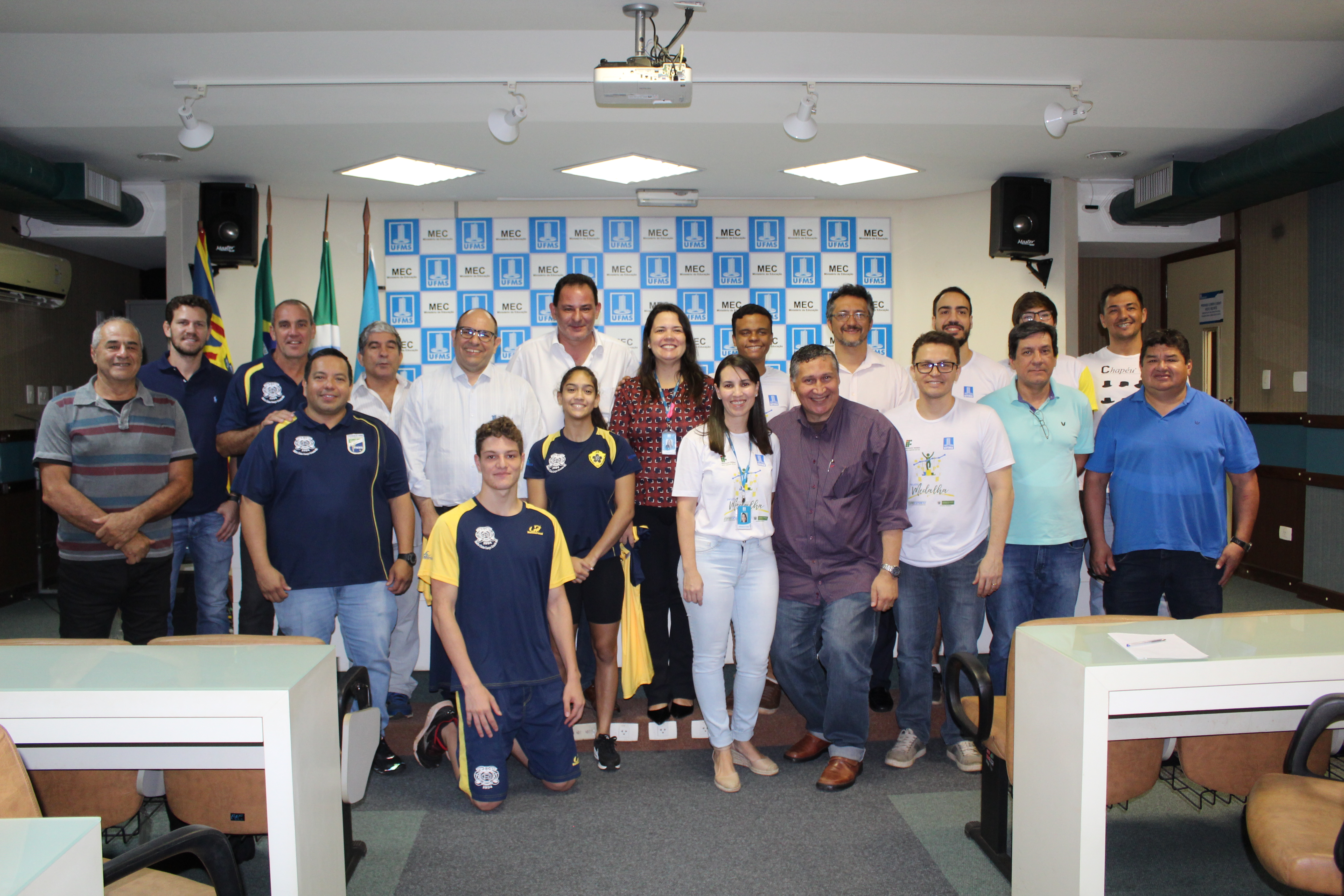 A cerimônia foi realizada na Sala de Atos, da Reitoria, e contou com a participação do reitor Marcelo Turine e da vice-reitoria Camila Ítavo, além do pró-reitor de Extensão, Cultura e Esporte, Marcelo Fernandes e do coordenador de Cultura e Esporte, Júnior Vagner. Técnicos e atletas do Rádio Clube e professores da UFMS também prestigiaram o evento. “O Rádio Clube possui tradição em competições esportivas, é uma instituição tradicional na Capital e, por isso, vamos pensar na possibilidade de ampliar a parceria com a Universidade”, comentou o reitor.