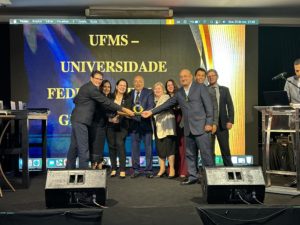 A UFMS recebeu o reconhecimento de Excelência em Gestão do Prêmio Qualidade da Gestão 2025, desenvolvido pelo Instituto MS Competitivo. O troféu foi entregue em evento realizado na noite de ontem, 26, em Campo Grande, para a reitora Camila Ítavo e para o vice-reitor Albert Schiaveto.