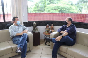 Nesta quarta-feira, 3, o reitor Marcelo Turine recebeu o secretário adjunto de Meio Ambiente, Desenvolvimento Econômico, Produção e Agricultura Familiar de Mato Grosso do Sul Ricardo José Senna. A reunião foi realizada no gabinete da Reitoria com o objetivo de discutir projetos em desenvolvimento e novas parcerias.