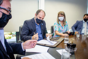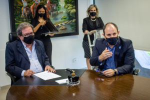 Na segunda-feira, 8, o reitor Marcelo Turine e o presidente do Tribunal de Contas de Mato Grosso do Sul (TCE-MS), Iran Coelho das Neves, assinaram convênio para o oferecimento do programa de Mestrado Profissional em Administração Pública. A parceria é inédita e tem como objetivo proporcionar aos servidores do TCE oportunidade de qualificação.