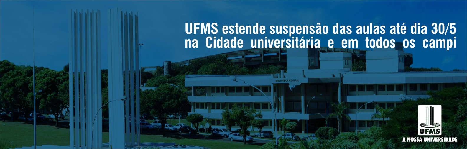 Em função da situação de desabastecimento nos municípios do estado, a UFMS comunica a suspensão das aulas da graduação e da pós-graduação em todos os campi da Instituição e na Cidade Universitária, em Campo Grande, até a próxima quarta-feira, dia 30.