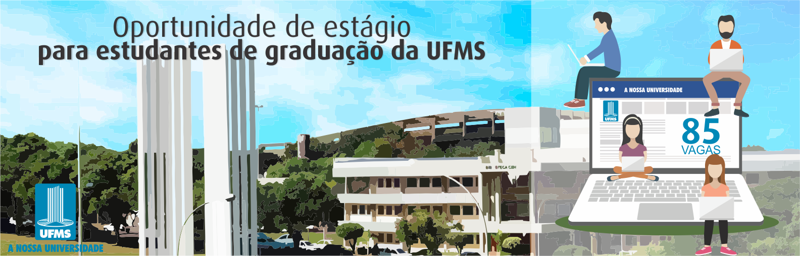 Ao todo são 85 vagas para bolsistas destinadas a estudantes de graduação da UFMS de diversas áreas. As inscrições devem ser feitas até o dia 22 de abril por meio do preenchimento online e envio de formulário no sistema Pró-Estágio: https://proestagio.ufms.br/. A seleção ocorrerá baseada em histórico escolar e entrevista com o responsável pela Unidade.