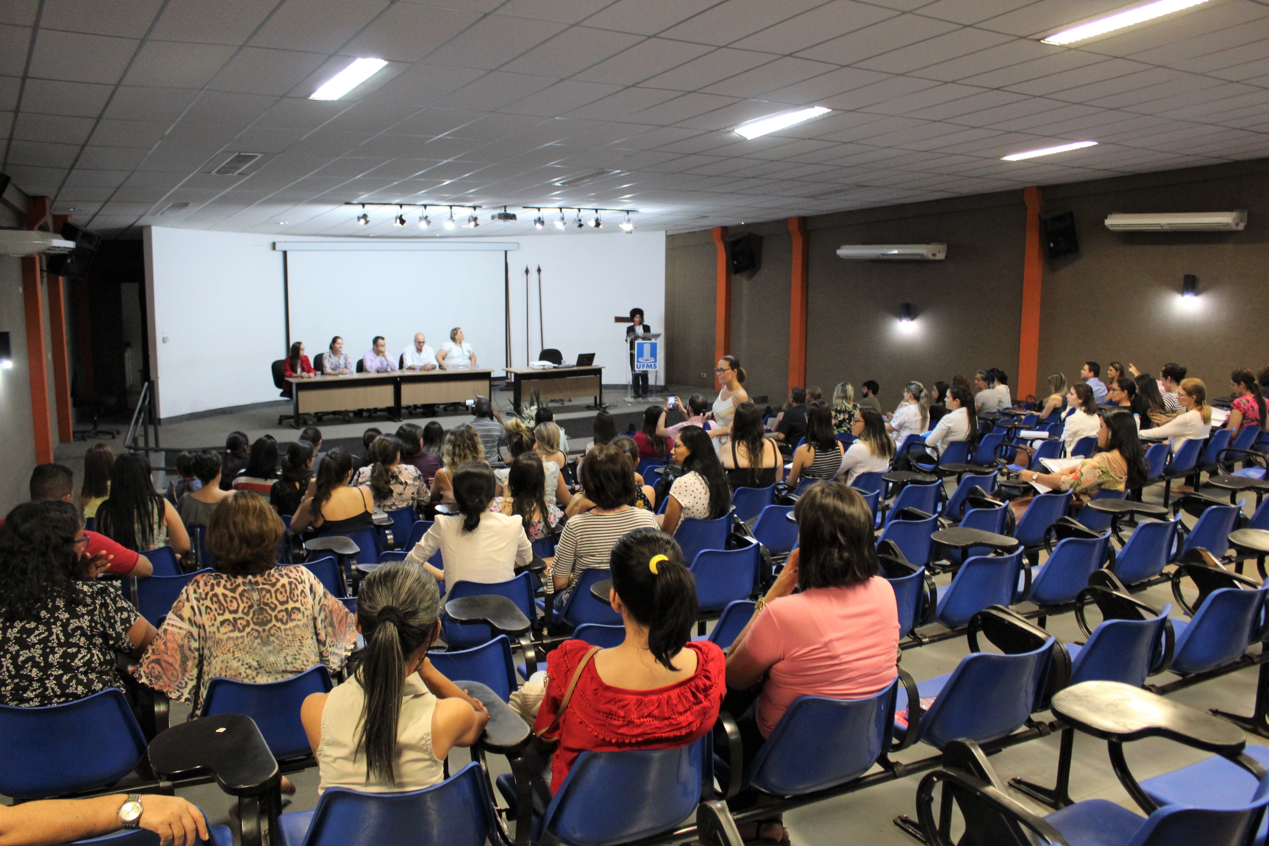 Na tarde desta sexta-feira (30), o Auditório do LAC foi palco para a cerimônia de abertura do Curso de Especialização em Cuidado às Condições Crônicas da Atenção Primária a Saúde, promovido pela UFMS em parceria com a Secretaria Municipal de Saúde Pública (Sesau). Na ocasião estiveram presentes os pró-reitores Marcelo Fernandes e Ana Rita Barbieri, o diretor da Faculdade de Medicina, professor Wilson Ayach, a coordenadora do curso de especialização, professora Adelia Delfina da Motta Silva e a representante da gerência de coordenação permanente da Sesau, Kassandhra Pereira Zolin.
