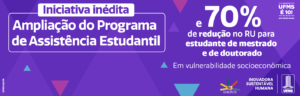 De forma inédita, a UFMS lançou edital para conceder auxílios de assistência estudantil aos estudantes de mestrado e doutorado em … Continue lendo UFMS inova com auxílios e 70% de desconto no valor do RU para estudantes de mestrado e de doutorado