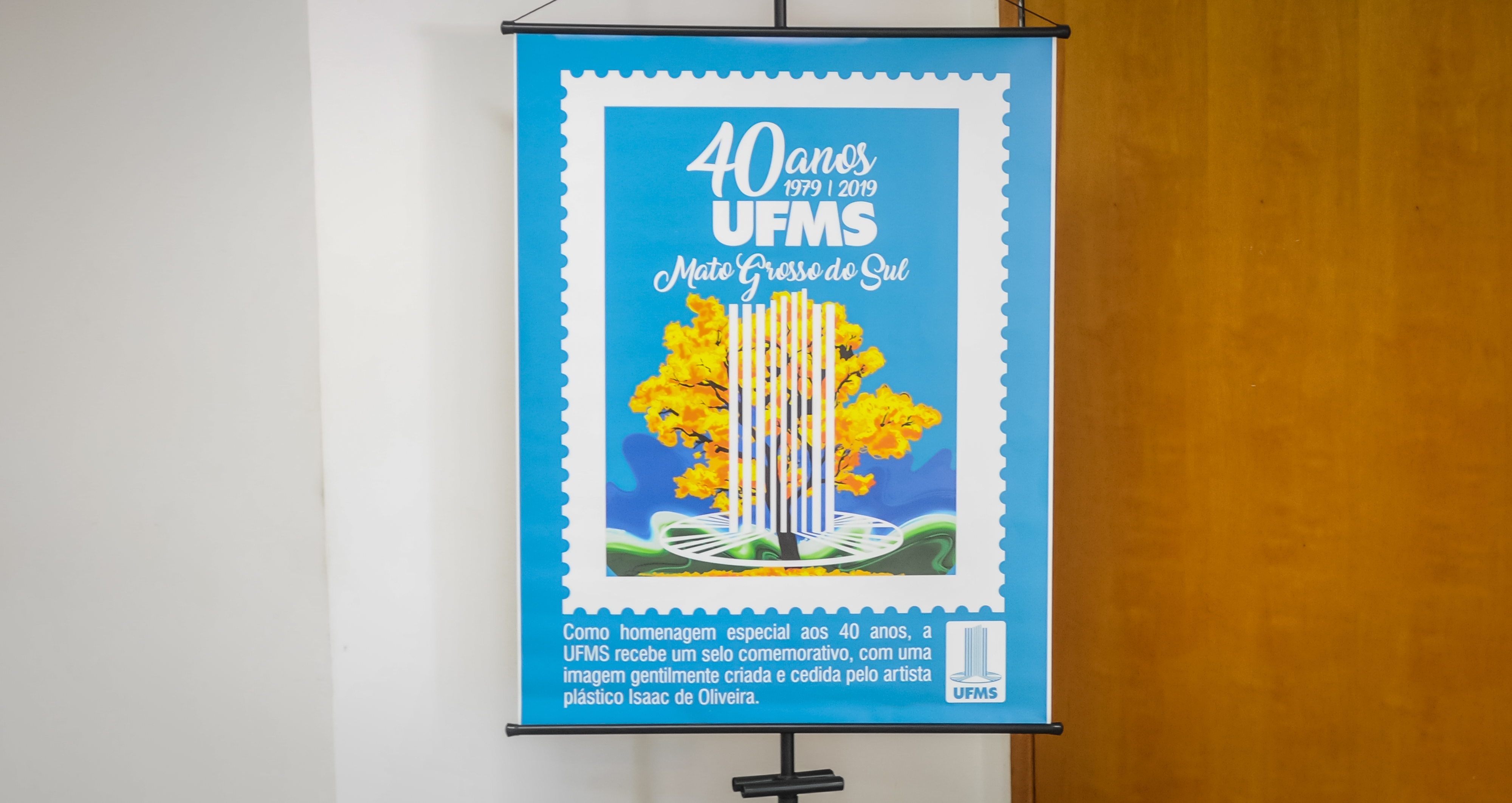 Criado para homenagear os 40 anos de federalização da UFMS, o selo personalizado será utilizado ao longo de 2019 nos documentos oficiais da Universidade, incluindo eletrônicos, correspondências, materiais institucionais, campanhas e mídias. A imagem foi criada e cedida pelo artista plástico Isaac de Oliveira. No dia 5 de julho, data de celebração do aniversário de 40 anos, será realizada uma cerimônia com a presença de representantes dos Correios para o lançamento também do carimbo comemorativo e álbum e cartela celebrativos.