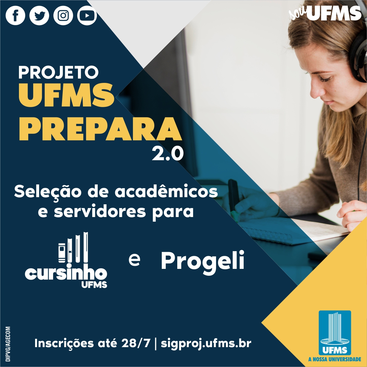 Recém-criado, o projeto de extensão UFMS Prepara lança o Cursinho UFMS 2.0 e o Progeli 2.0, que serão oferecidos por meio de aulas pela internet, considerando esse momento de pandemia.