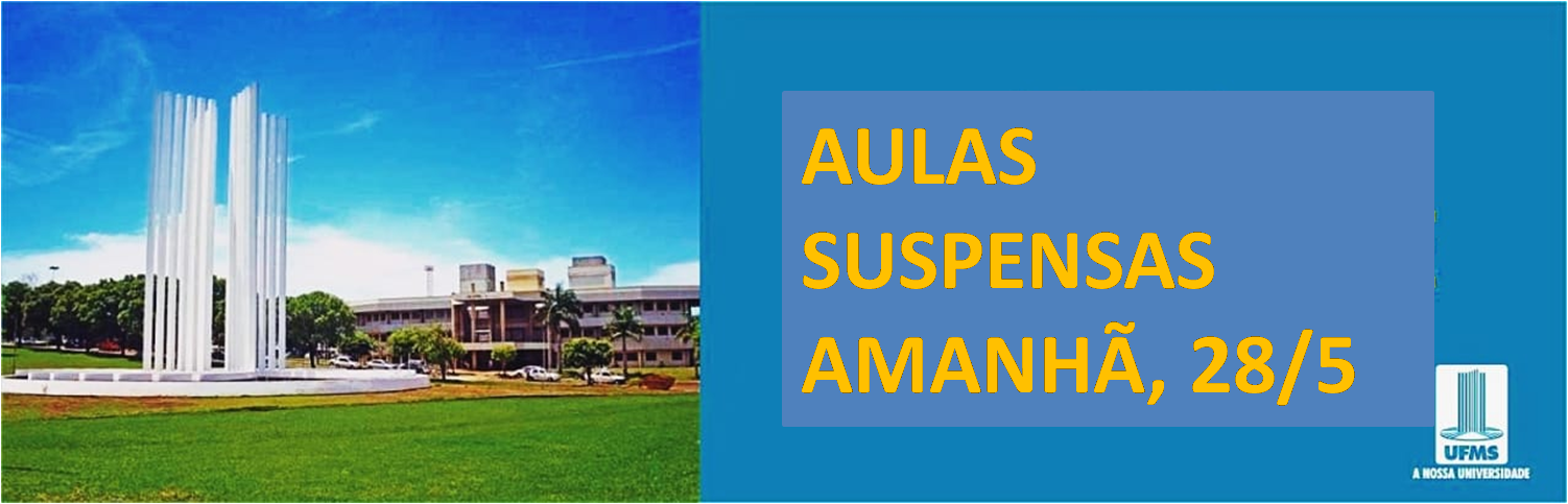 Em razão disso, a UFMS decidiu pela suspensão das aulas e das atividades avaliativas de graduação e de pós-graduação do dia 28 de maio de 2018 (segunda-feira). No caso de eventos, defesas de pós-graduação e demais ações previamente programadas, a decisão de continuidade ou não deve ser tomada pela equipe responsável pela ação. As atividades administrativas serão mantidas, sendo que a UFMS orienta as chefias responsáveis pelos docentes, técnico-administrativos e alunos residentes a gerir com sensibilidade e compreensão os impactos das dificuldades de mobilidade. Todas as atividades impactadas serão repostas tão logo se normalize o abastecimento de combustíveis.