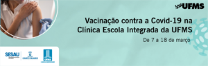 De 7 a 18 de março, a Cidade Universitária da UFMS terá um ponto de vacinação contra a Covid-19 aberto … Continue lendo UFMS terá ponto de vacinação contra a Covid-19 na Clínica Escola Integrada