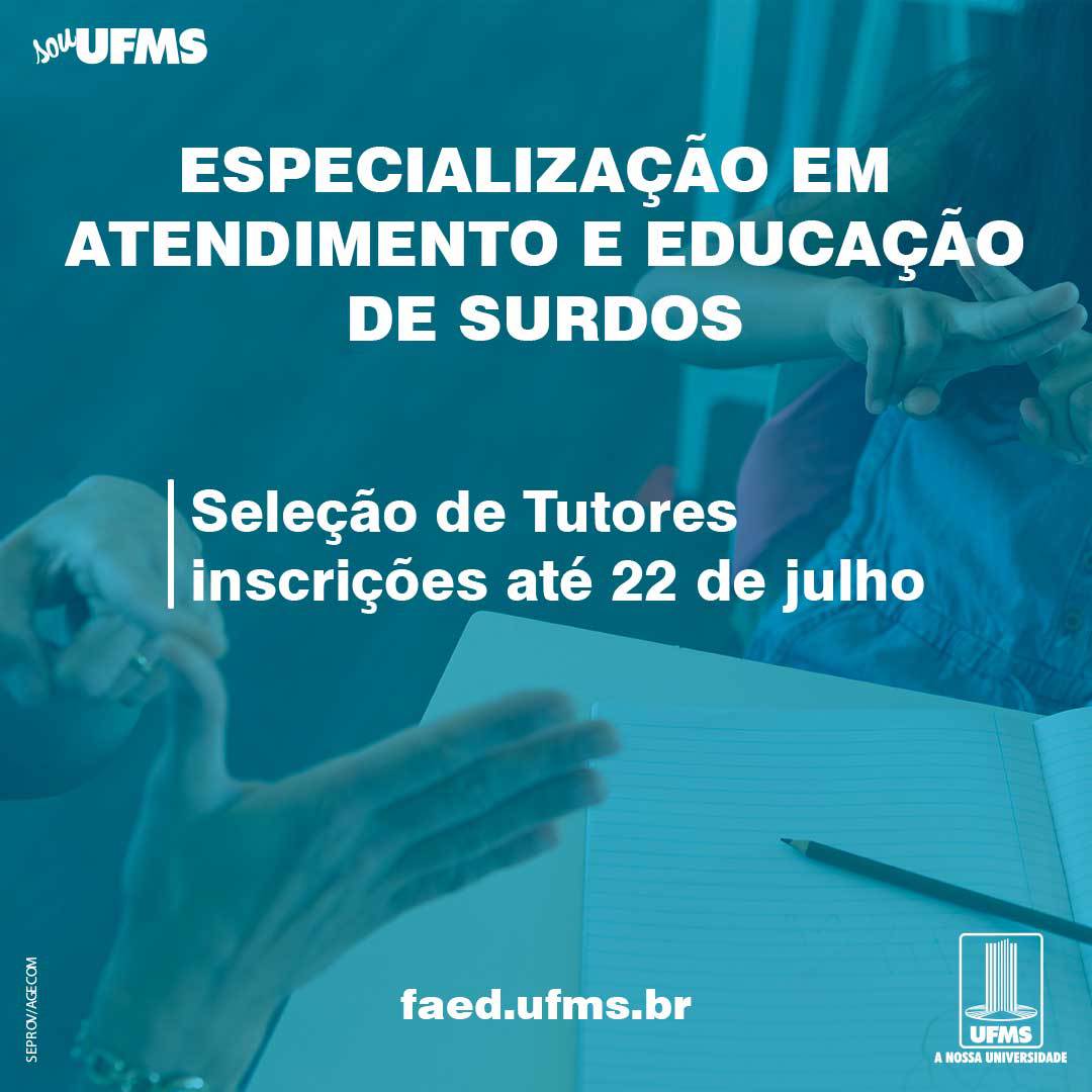 Interessados em atuar como tutor a distância na especialização em Atendimento e Educação de Surdos em Espaços Escolares da UFMS têm até o final desta sexta-feira, 22, para inscrição. O processo é para formação de cadastro reserva e a candidatura pode ser feita gratuitamente neste link, com o preenchimento do formulário e envio dos documentos indicados no edital de convocação.
