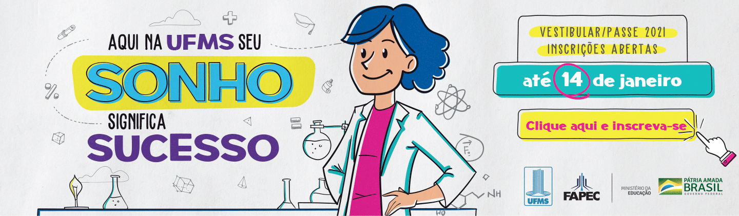 Estão abertas até quinta-feira, 14 de janeiro, as inscrições para o Vestibular UFMS e para a 1ª, 2ª e 3ª etapa do Programa de Avaliação Seriada Seletiva (PASSE). Ao todo serão ofertadas 5.276 vagas em 114 cursos de graduação.