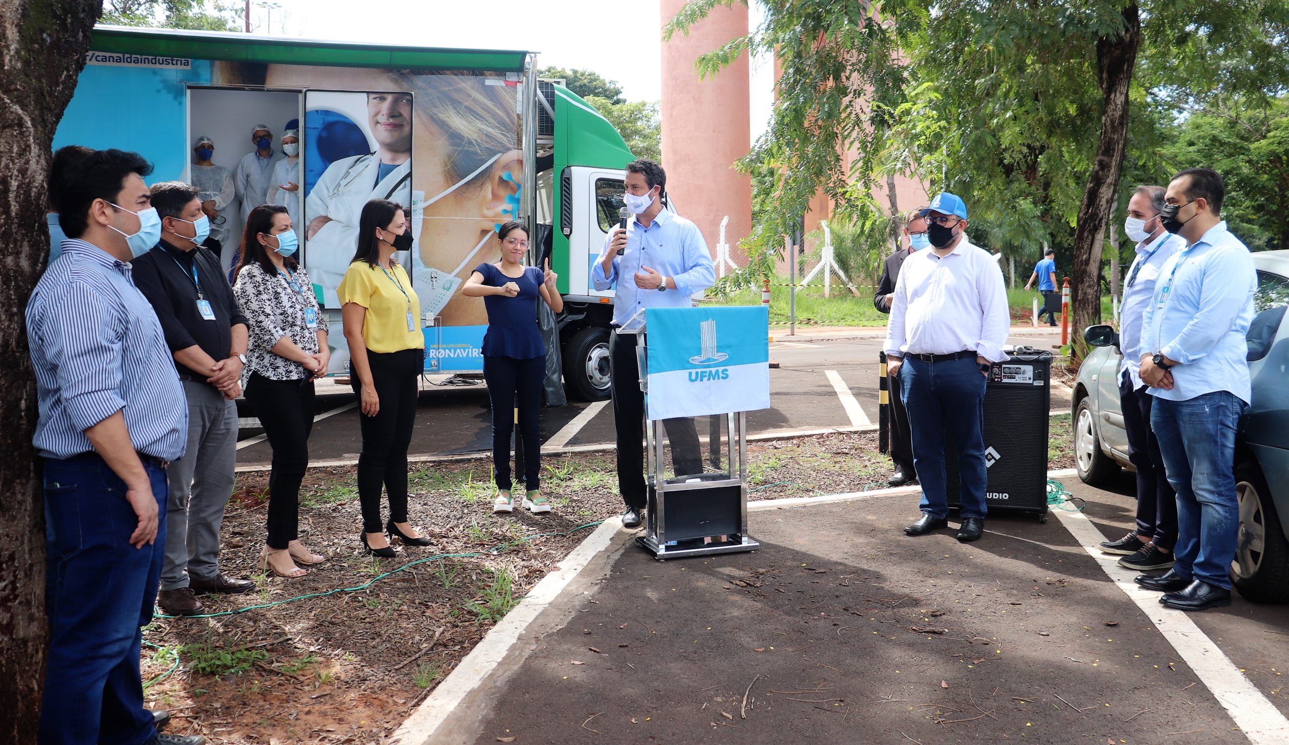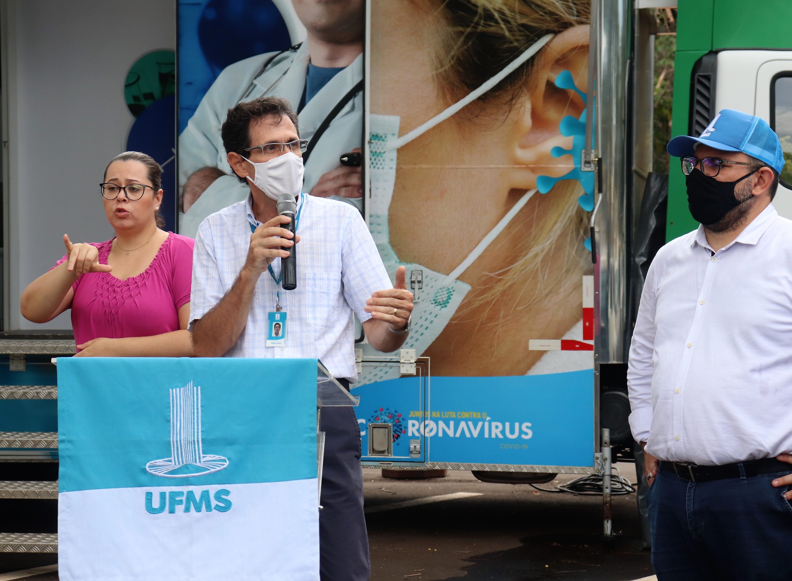 “Quero agradecer ao reitor e vice-reitora, além dos pró-reitores e comunidade acadêmica, em nome do presidente da Fiems, Sérgio Longen, pela confiança que a UFMS tem depositado em nós nessas parcerias que vimos trabalhando há bastante tempo. Trazer uma unidade móvel de testagem rápida é o mínimo que podíamos fazer para esse início do semestre, pois o papel da UFMS em formar talentos que vêm para a indústria é fundamental”, enfatizou o superintendente do Sesi de MS Régis Borges.