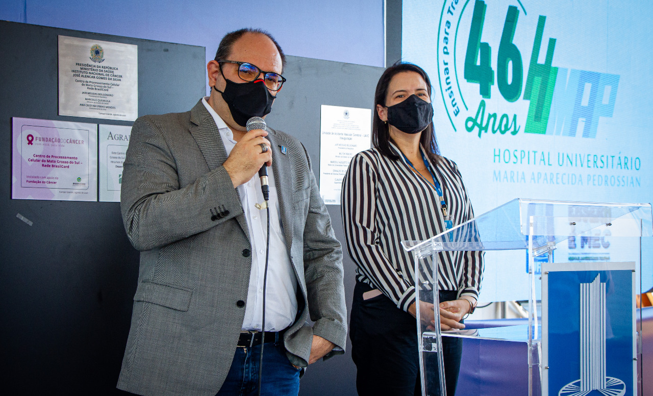 O representante da Fundação Ary Frauzino (FAF) Reinhard Braun citou a parceria para o recebimento dos recursos do BNDES e ressaltou o privilégio de estar na inauguração hoje. “Inauguração muito emblemática desse CPC que é o 16º da Rede BrasilCord, implementada graças a investimentos significativos do BNDES. Este que inauguramos hoje é o ultimo e o mais moderno de todos, porque absorveu as melhores tecnologias identificadas ao longo do processo. Isso coloca o estado de MS na fronteira do conhecimento científico. O Humap-UFMS Ebserh está sendo contemplado com a tecnologia mais avançada no que diz respeito à criopreservação de células tronco, o que também vai permitir o desenvolvimento de terapia celular para tratamento do câncer. Esse empreendimento é de importância estratégica, trará benefícios para o país e benefícios sem precedentes para o estado. A população de MS tem uma diversidade genética peculiar e num futuro próximo não irá precisar mais se deslocar para outros centros porque aqui teremos toda a tecnologia para avançarmos nos procedimentos de transplante de medula óssea. Sinto-me realizado e orgulhoso diante da magnitude desse projeto”, declarou.