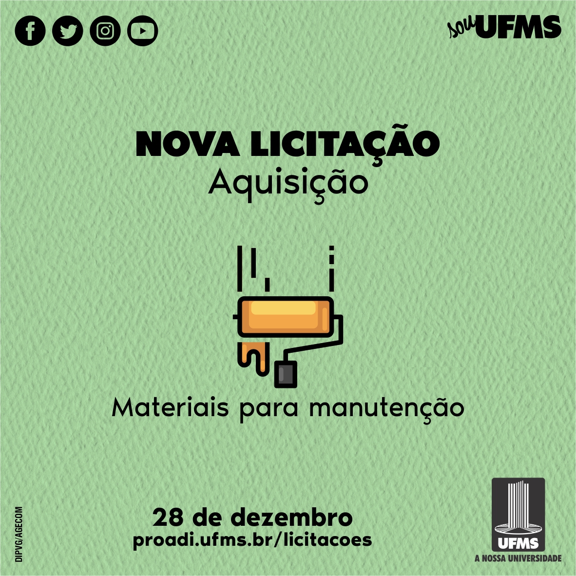 No dia 28 de dezembro, a UFMS abre pregão eletrônico visando o registro de preços para aquisição de 22 itens entre tintas, massa corrida, selador, solventes e diluentes. Segundo o pró-reitor de Administração e Infraestrutura (Proadi) Augusto Malheiros, nesta licitação serão atendidas demandas da Coordenadoria de Manutenção. “A aquisição desses materiais é necessária para efetuar a manutenção corretiva e preventiva na infraestrutura da Cidade Universitária e dos câmpus”, explica Augusto.