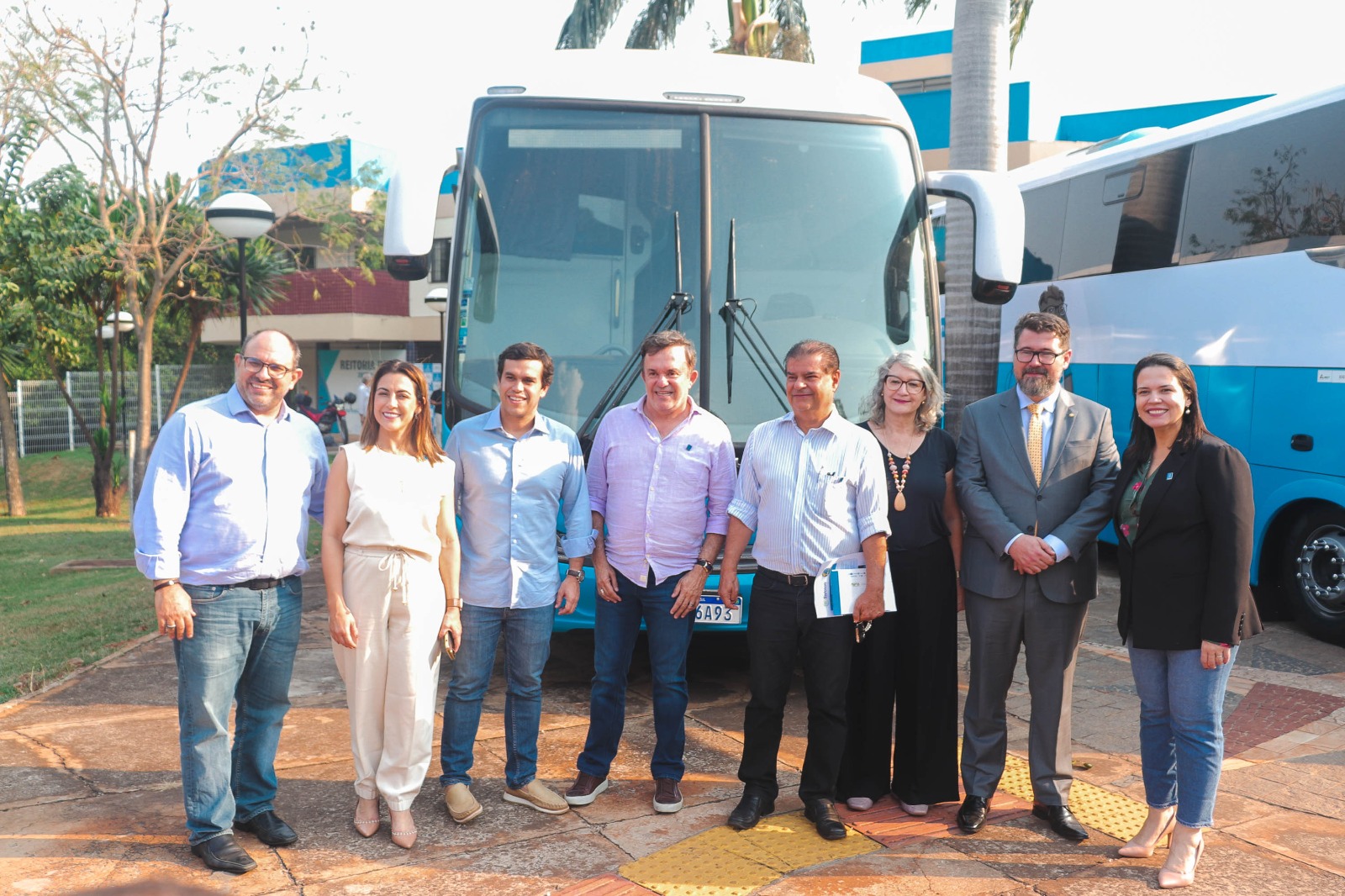 Ao final do evento, foram apresentados os dois ônibus conseguidos com a parceria com a bancada federal e com a Delegacia da Receita Federal de Campo Grande.