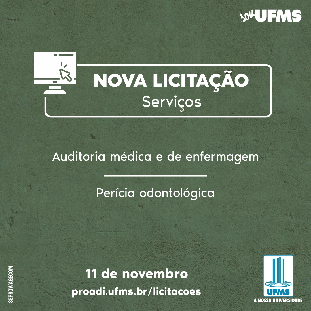 Em 11 de novembro, a UFMS abre pregão eletrônico para contratar empresa especializada em fornecimento de mão de obra terceirizada para prestação de serviços de auditoria médica e de enfermagem e perícia odontológica para atender o Programa de Assistência à Saúde (PAS). “Os recursos orçamentários para atender essa licitação estão programados em dotação própria prevista no orçamento da União para o exercício de 2021 e atenderão à demanda oriunda da Secretaria de Atenção ao Servidor da Pró-reitoria de Gestão de Pessoas”, destaca o pró-reitor de Administração e Infraestrutura Augusto Malheiros.