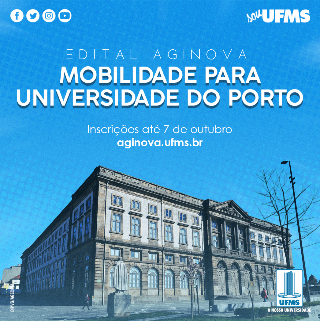 Estudantes de graduação e de pós-graduação da UFMS interessados em cursar um semestre letivo na Universidade do Porto (U.Porto), em Portugal, têm até 7 de outubro para se inscreverem. A oportunidade é para estudos a partir de fevereiro de 2021, a depender da situação epidemiológica em razão da Covid-19.