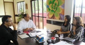 No dia 20 de março o Reitor da UFMS Marcelo Turine e o Pró-Reitor de Extensão, Cultura e Esporte Marcelo Fernandes receberam a diretora-presidente Anelza Leite Campos e a diretora-financeira Margareth Bertelli do Grupo de Incentivo a Cidadania e Qualidade de Vida – Viver Bem. O objetivo foi discutir parceria entre as instituições.