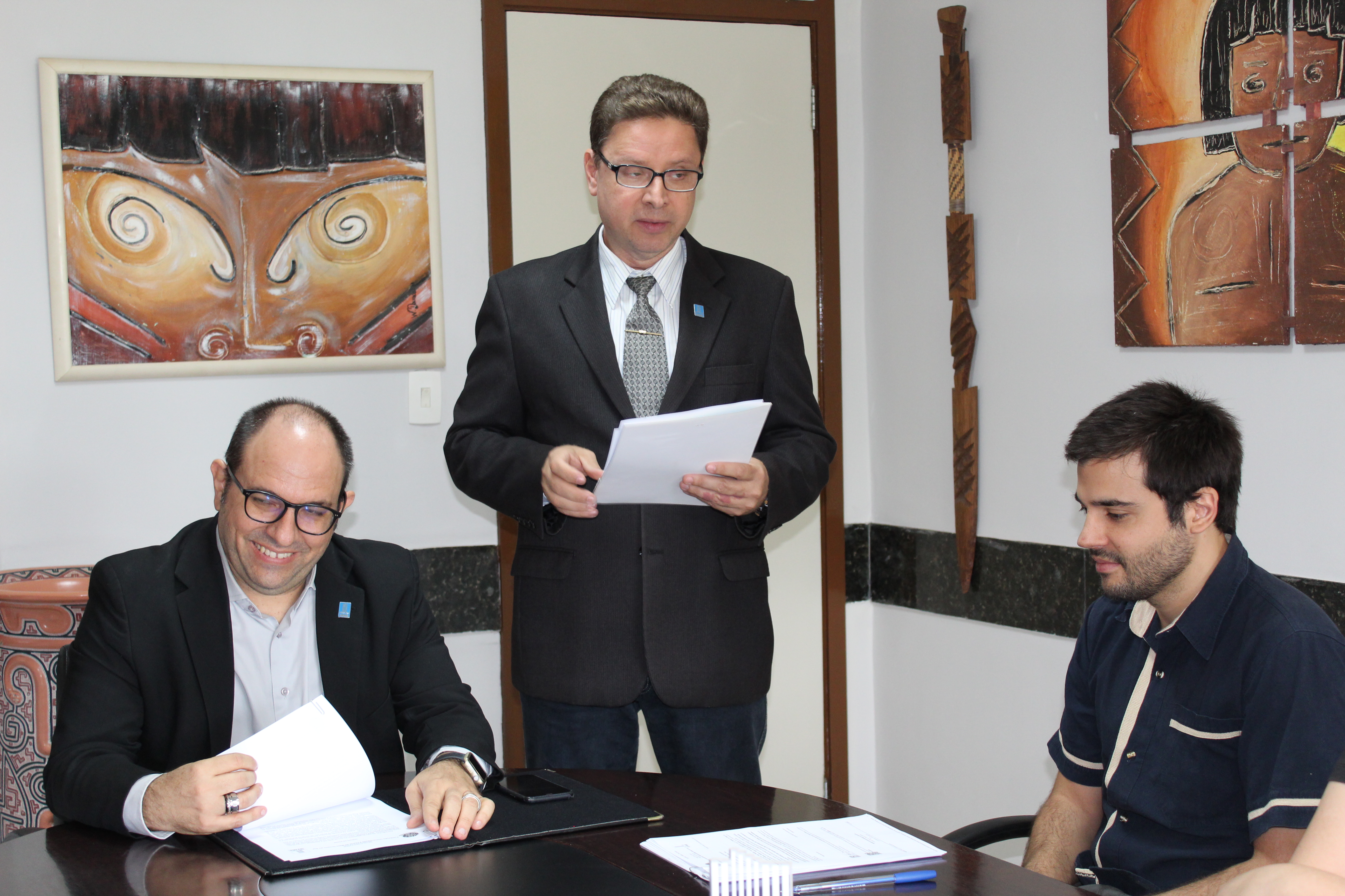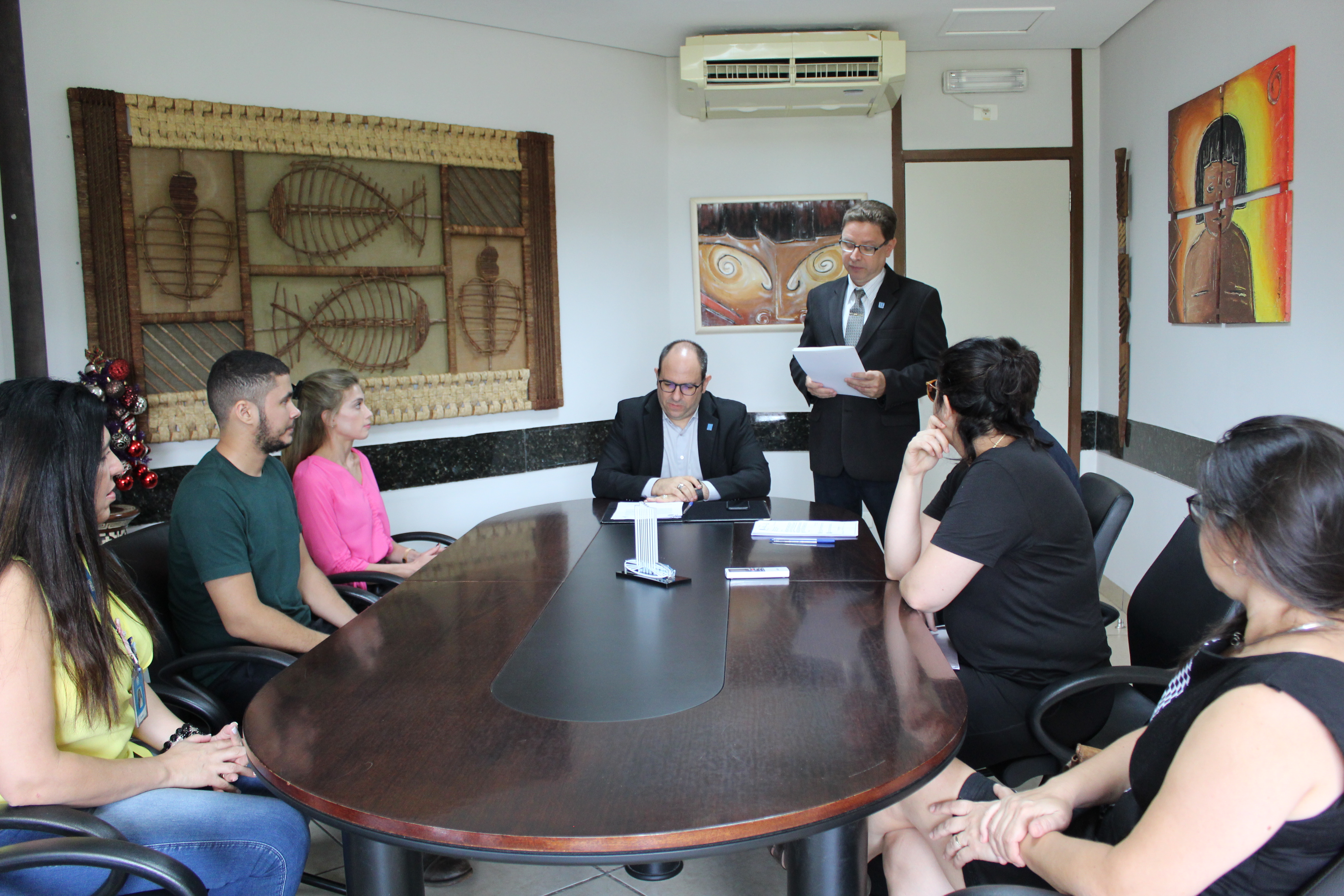 Tomaram posse, nesta terça-feira (3), quatro novos servidores: Aurélio Mateus Araújo Souza, como técnico administrativo (Classe D); Beatriz Maria Jorge, Rodrigo Mendes de Souza e Max Packer como professores adjuntos. “Desejo que vocês sejam felizes aqui e nos ajudem a cumprir nossa missão que é formar jovens talentos em todas as áreas do conhecimento. Fico muito satisfeito em saber que vocês escolheram continuar a carreira profissional na UFMS. Sei que alguns são de outro Estado, eu também era quando vim para cá. Apesar das dificuldades iniciais, construí minha vida profissional e minha família em Mato Grosso do Sul e, hoje, não troco esse Estado por nenhum outro”, comentou o reitor Marcelo Turine.