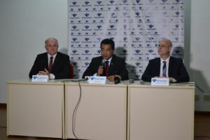Na ocasião, o Reitor e os professores da UFMS foram convidados ainda pelo Delegado Adjunto da Receita Federal Henry Tamashiro Oliveira para apresentarem e discutirem as pesquisas e perspectivas de utilização de materiais pela UFMS com o chefe da Divisão de Controle de Mercadorias Apreendidas, Roberto Born, e com a Assessora da Receita Federal, Mara Lourdes Silveira Jara.