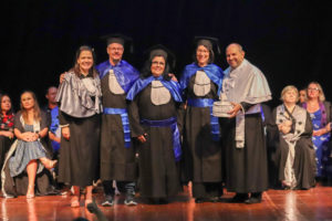 Após a leitura dos termos de concessão dos títulos e ordem, e da colocação do pelerine e vestes talares em cada um dos homenageados, o reitor encerrou a cerimônia. Porém, a festa continuou no Teatro, repleto de familiares e amigos dos servidores e estudantes que foram destaque no evento. Confira a galeria completa de fotos aqui.