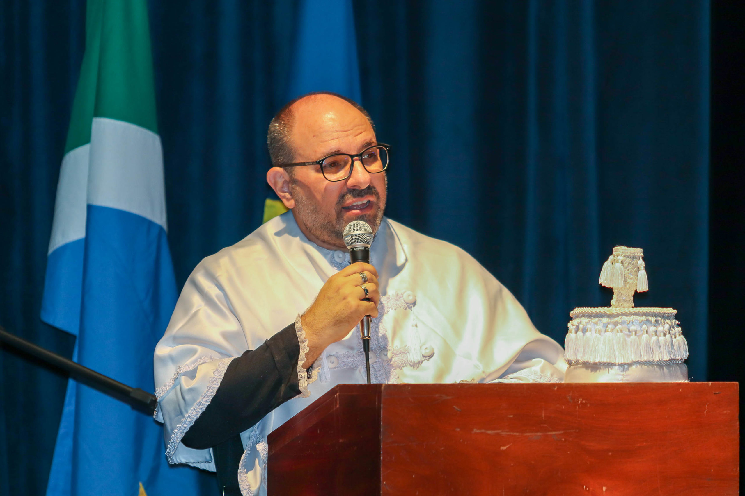 O reitor Marcelo Turine agradeceu ao Conselho Universitário pelas indicações dos homenageados e homenageadas. Durante a solenidade, cada um dos 82 homenageados receberam os títulos em frente ao Teatro lotado. “Fazemos questão de, nesse momento, abraçar cada um de vocês. O abraço engrandece o ser humano e é um sinal de respeito. Tantas histórias passaram por aqui na manhã de hoje. Nossos egressos fazem da Nossa Universidade a razão de sua existência. Nossos professores e técnicos são a base da Nossa Universidade. Muito obrigado pelo ‘sim’ de vocês à UFMS”, disse.