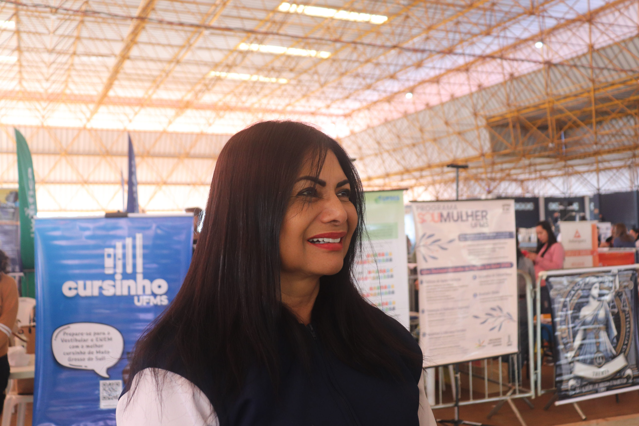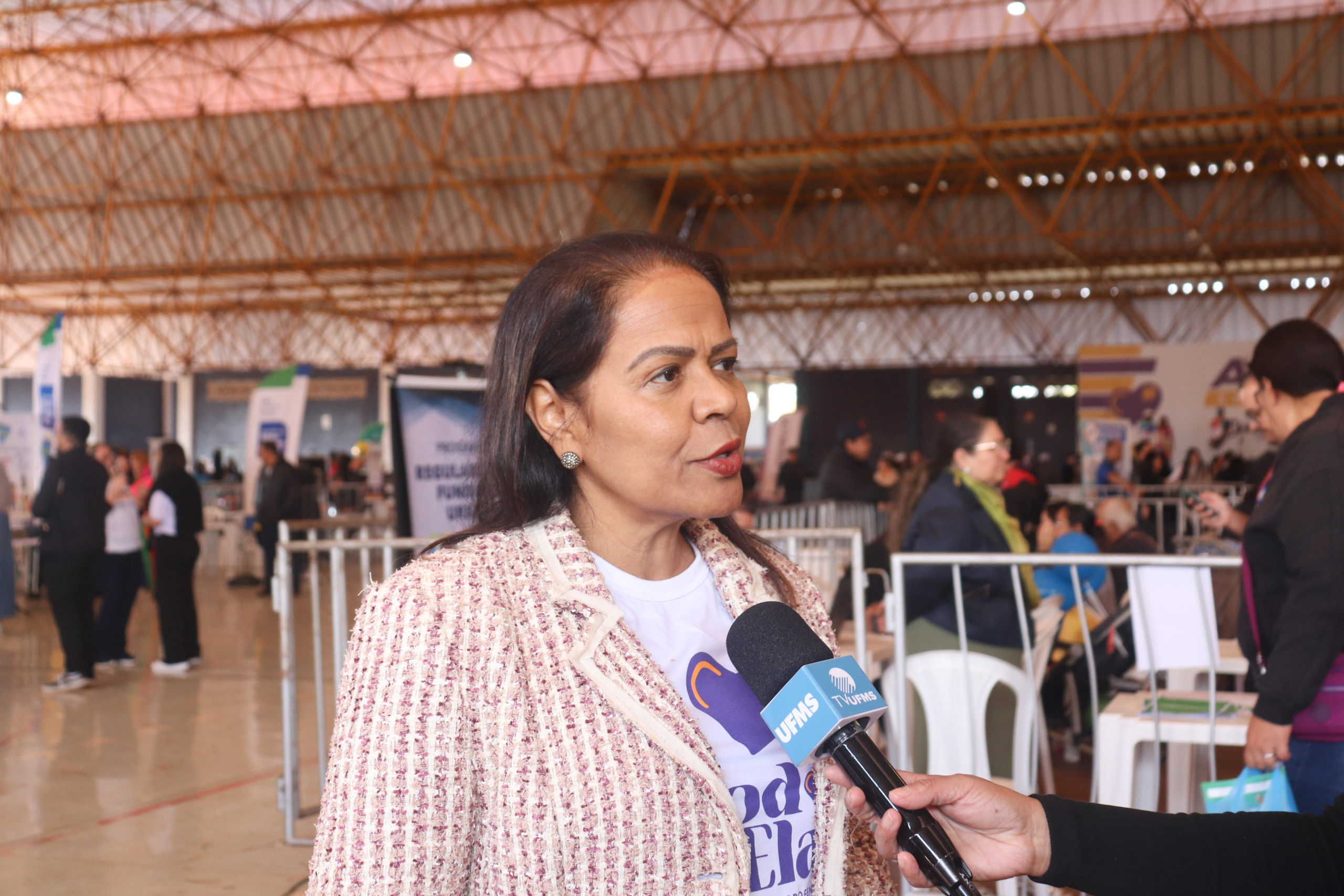 A reitora Camila Ítavo celebrou a oportunidade de aproximação da Universidade com a população por meio dos diversos serviços oferecidos. “É uma alegria estar aqui neste evento Todos por Elas, onde a gente tem a Pró-Reitoria de Cidadania e Sustentabilidade mostrando todos os serviços relacionados ao atendimento das mulheres. A gente tem a oportunidade da transformação das vidas pela educação. Então, a gente [está] colocando o Cursinho UFMS à disposição, os nossos cursos de graduação, os cursos de mestrado, doutorado, especialização, toda a parte científica e também o Observatório da Cidadania. Colocando a participação também dos nossos estudantes, tanto na área jurídica com a Defensoria Pública da União, quanto nas ligas acadêmicas, fazendo com que a gente coloque todo o conhecimento que é gerado na Universidade à disposição de todas as pessoas. De maneira muito especial neste sábado, às mulheres e às suas famílias, para que a gente tenha cada vez mais uma vida melhor para todos e para nós, enquanto Universidade, melhorando a formação de todos os nossos estudantes e nessa aproximação tão importante com a sociedade”, disse.