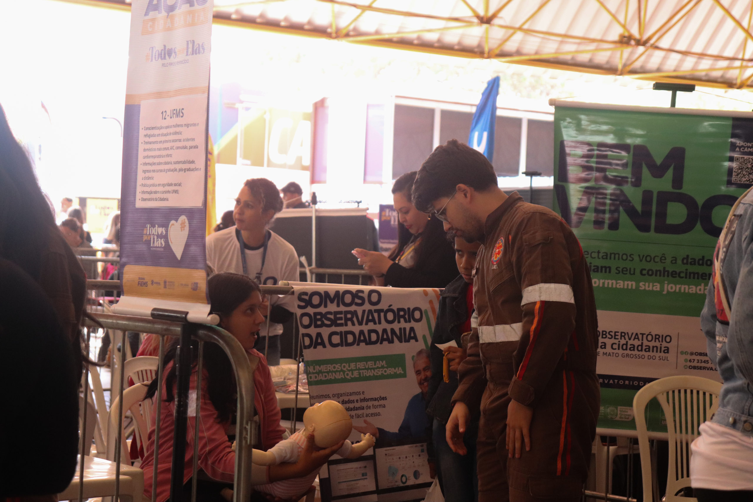 O evento foi realizado no Parque Jacques da Luz, em Campo Grande, e atendeu à comunidade com atividades educativas, de inclusão social e profissional. A Universidade expôs projetos e ações institucionais e apresentou painéis sobre cidadania e violência contra mulheres desenvolvidos pelo Observatório de Cidadania de Mato Grosso do Sul (OCMS), além de oferecer orientações e serviços educativos voltados à saúde, direitos e acolhimento.