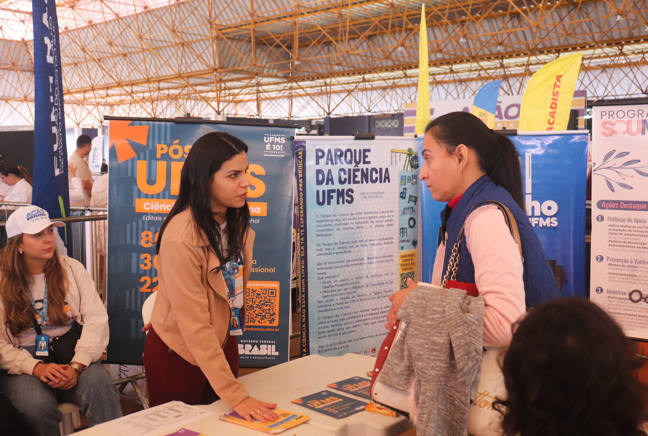 A comunidade também pôde conhecer os cursos a distância oferecidos pela Agência de Educação Digital e a Distância, como explicou a colaboradora Bianca Azevedo. “Estamos apresentando aqui os nossos cursos de graduação e está sendo uma troca bem bacana com o pessoal. Eles estão pegando os panfletos e procurando saber quais são as datas das provas, dos vestibulares, como que faz para acessar os sites. Está sendo muito bacana, um retorno muito positivo do pessoal que está aqui participando conosco e nós também, da UFMS, ficamos muito felizes de poder estar proporcionando esse momento para eles”, falou.