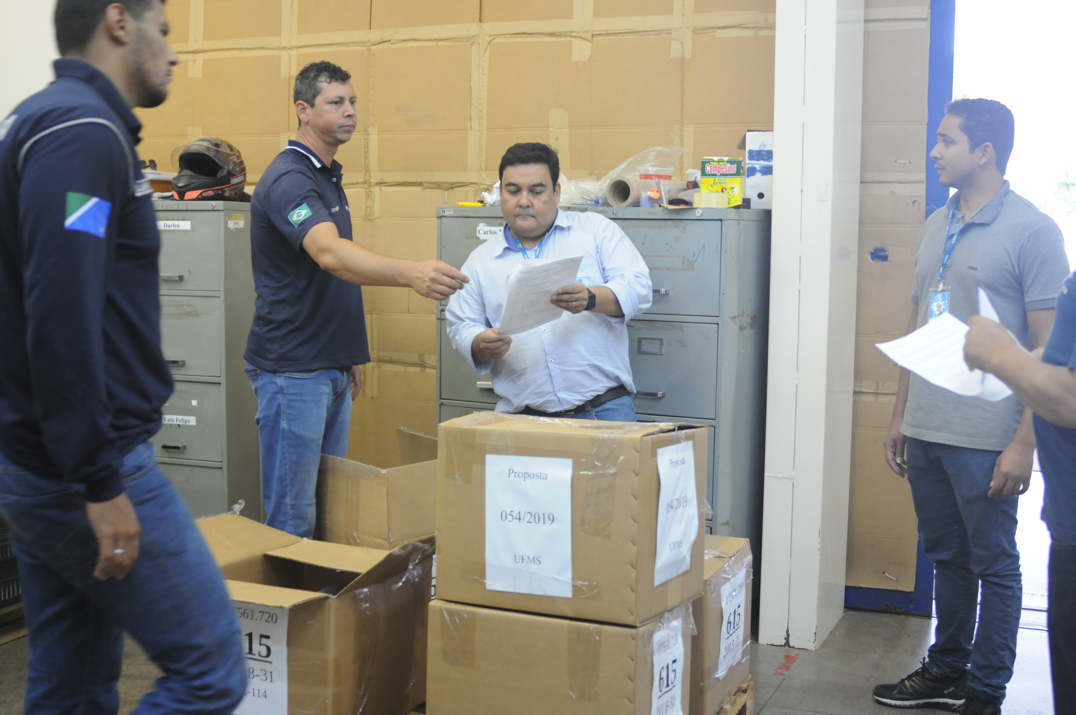 A equipe da UFMS foi até a Delegacia da Receita Federal em Campo Grande para conferência das doações e transporte dos mesmos até a Universidade, onde elas serão organizadas e catalogadas para então atualizarem o parque tecnológico e serem distribuídas, de acordo com a necessidade de cada unidade.