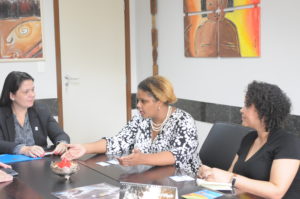 Nesta sexta-feira, 31, a vice-reitora Camila Ítavo recebeu a chefe da Seção Cultural do Consulado dos EUA em São Paulo Madelina Young-Smith. Acompanhada da assessora cultural Joyce Costa, Madelina esteve na Reitoria com o objetivo de estreitar laços entre a UFMS e o Consulado a fim de concretizar futuras ações.