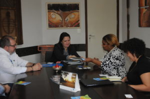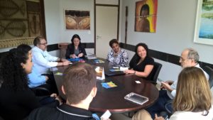 Participaram também da reunião a assessora técnica e coordenadora do American Corner do Sesc – MS, Nádia Salles, a pró-Reitora de Assuntos Estudantis, Ana Rita Barbieri, o pró-reitor de Pesquisa e Pós-Graduação, Nalvo Franco, o diretor da Agência de Desenvolvimento e Inovação, Marco Antonio Mattos e Carolina Nantes da Divisão de Relações Internacionais e o assessor da Reitoria Edson Cáceres.