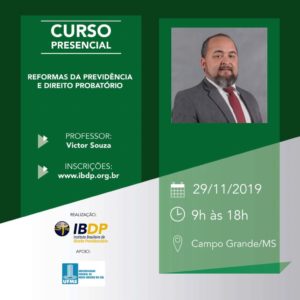No dia 29 de novembro o Juiz Federal do TRF da 2ª Região Victor Roberto Corrêa de Souza estará na UFMS para ministrar o curso “Reformas da Previdência e Direito Probatório”. O evento será no Complexo Multiuso e as inscrições estão abertas por meio do site https://www.ibdp.org.br. Ao todo são 200 vagas.