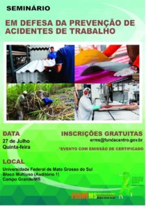 A iniciativa é do Fórum de Saúde, Segurança e Higiene no Trabalho de Mato Grosso do Sul (FSSHT/MS), com o apoio da Fundacentro, e é destinada aos profissionais da área de segurança e saúde no trabalho e demais interessados no tema. As inscrições são gratuitas e devem ser feitas por meio do e-mail erms@fundacentro.gov.br