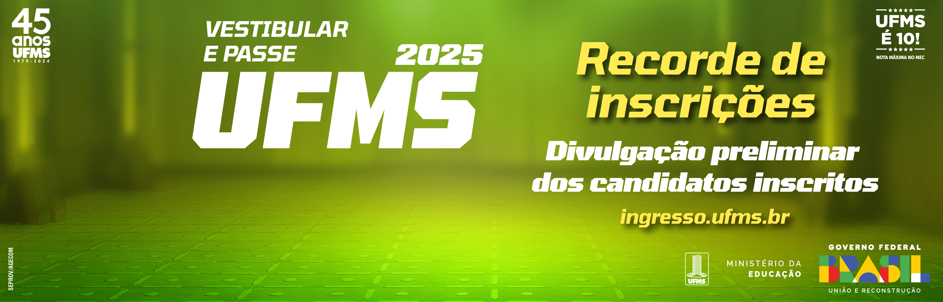 O Vestibular UFMS e as três etapas do Programa de Avaliação Seriada Seletiva (PASSE) para ingresso em 2025 obtiveram um novo recorde. Somadas, totalizam 49,8 mil inscrições, o que corresponde a um aumento de 10,9 % em relação ao ano passado. Os editais com o resultado preliminar dos inscritos e mais informações sobre os processos seletivos podem ser acessados na página Ingresso UFMS.
