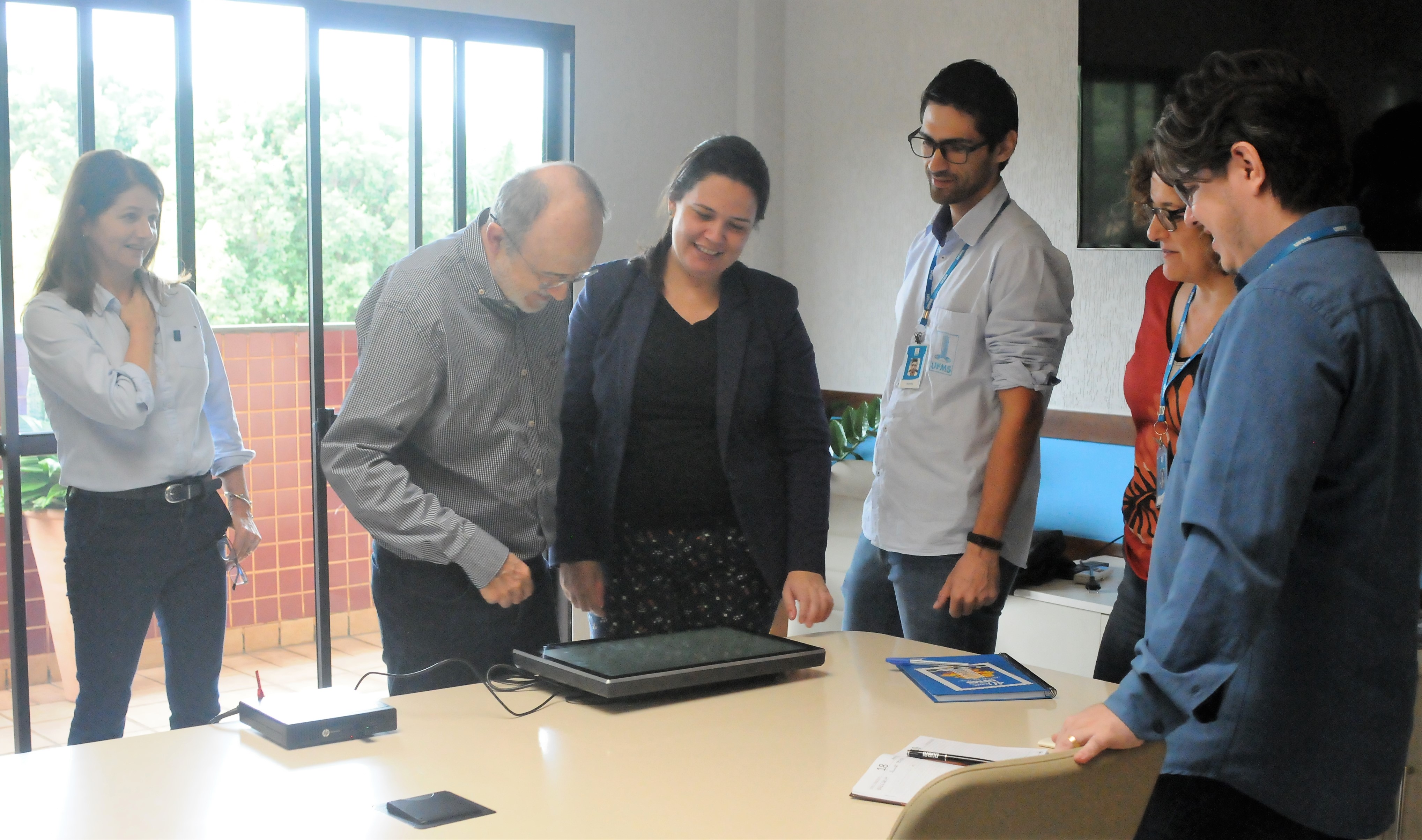 Um protótipo do equipamento eletrônico foi apresentado hoje (3) pela equipe da Coordenadoria de Gestão de Sistemas da Agência de Tecnologia da Informação e Comunicação (Agetic). Além da vice-reitora, participaram da reunião o assessor da reitoria Edson Cáceres, a pró-reitora de Assuntos Estudantis Ana Rita Barbieri Filgueiras e a secretária especial de Comunicação Rose Mara Pinheiro.