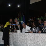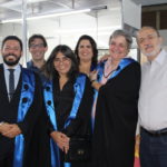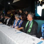 Mesa de autoridades e paraninfos – O reitor Marcelo Turine, a vice-reitora Camila Ítavo, os pró-reitores de Extensão, Cultura e Esporte, Marcelo Fernandes, de Assuntos Estudantis, Ana Rita Barbieri, de Pesquisa e Pós-Graduação, Nalvo Franco, de Administração e Infraestrutura, Augusto Malheiros, de Planejamento, Orçamento e Finanças, Dulce Tristão e de Gestão de Pessoas, Carmem Borges compuseram a mesa de autoridades, com os diretores das faculdades de Ciências Farmacêuticas, Alimentos e Nutrição, Maria Lígia Macedo; Odontologia, Paulo Zarate; Medicina Veterinária e Zootecnia, Fabrício Frazilio; e dos institutos Integrado de Saúde, Luciana Contrera; Biociências, representado pela professora Fabiana Zanoelo; Física, Dorotéia de Fátima Brito; e Química, representado pelo professor Carlos Eduardo Nazário.