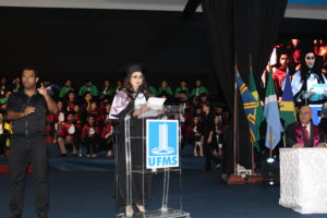 “A UFMS não forma apenas profissionais, ela transforma pessoas”, disse a mais nova licenciada em Ciências Biológicas pela Universidade e oradora da última cerimônia de Colação de Grau Unificada, Ana Paula Ramos. A cerimônia aconteceu no dia 20 de dezembro. “Hoje, quero lembrar e parabenizar todos nós que superamos dificuldades financeiras, pessoais, familiares, ultrapassamos todas as barreiras, para podermos finalmente voltar para nossas casas e dizermos: eu consegui!”, destacou Ana Paula.
