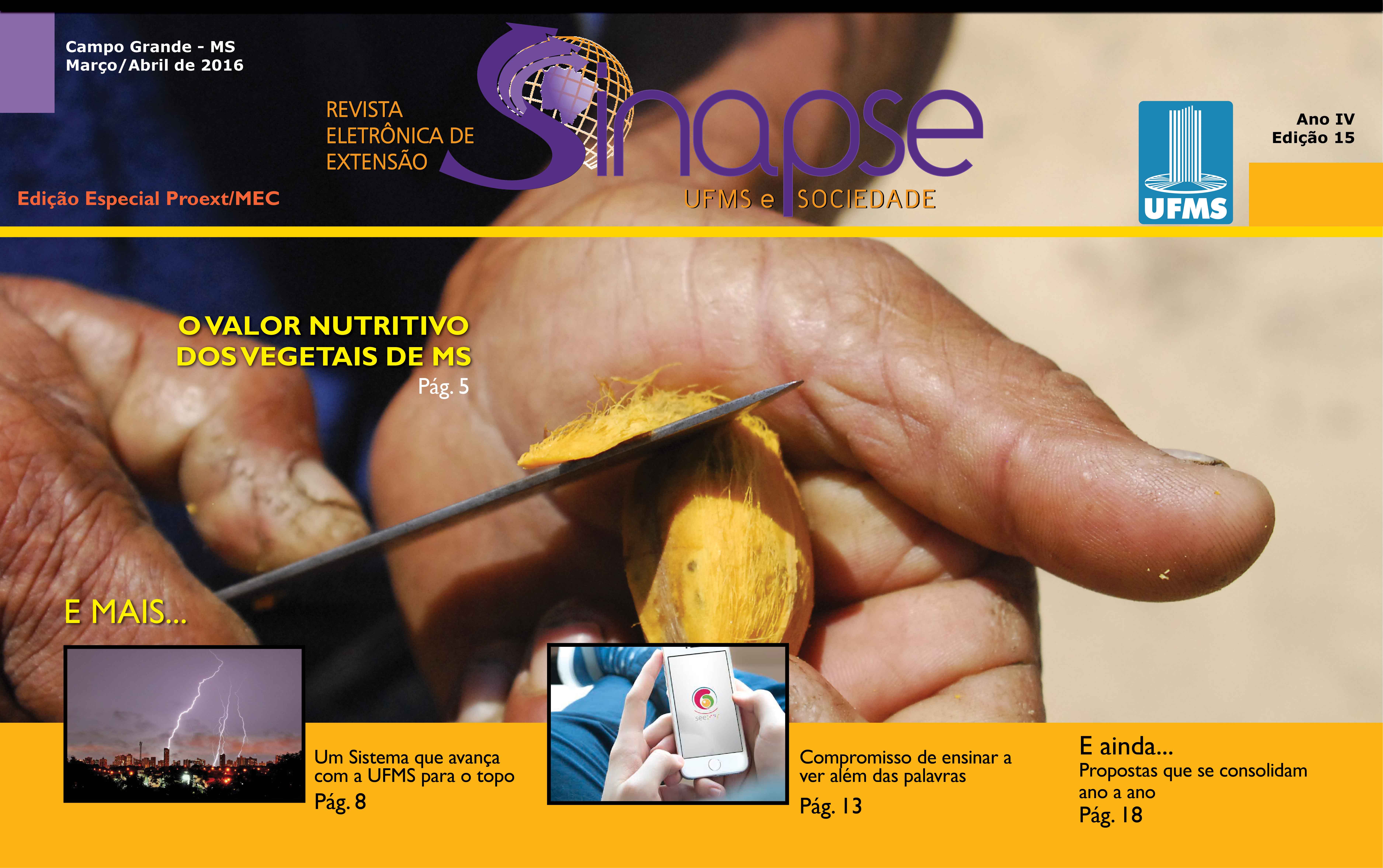A Revista Eletrônica da Extensão: “Sinapse – UFMS e Sociedade” é uma publicação da Pró-Reitoria de Extensão, Cultura e Assuntos Estudantis em parceria com a Coordenadoria de Comunicação Social e com o Núcleo de Tecnologia da Informação da UFMS.